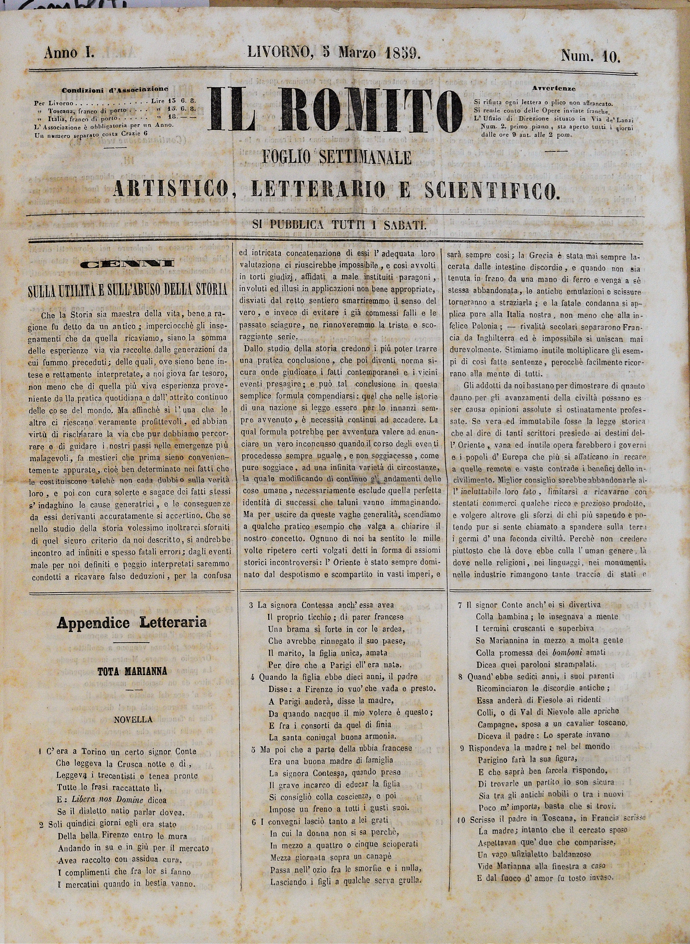 Anno I. Num. 10. Livorno, 5 Marzo 1859