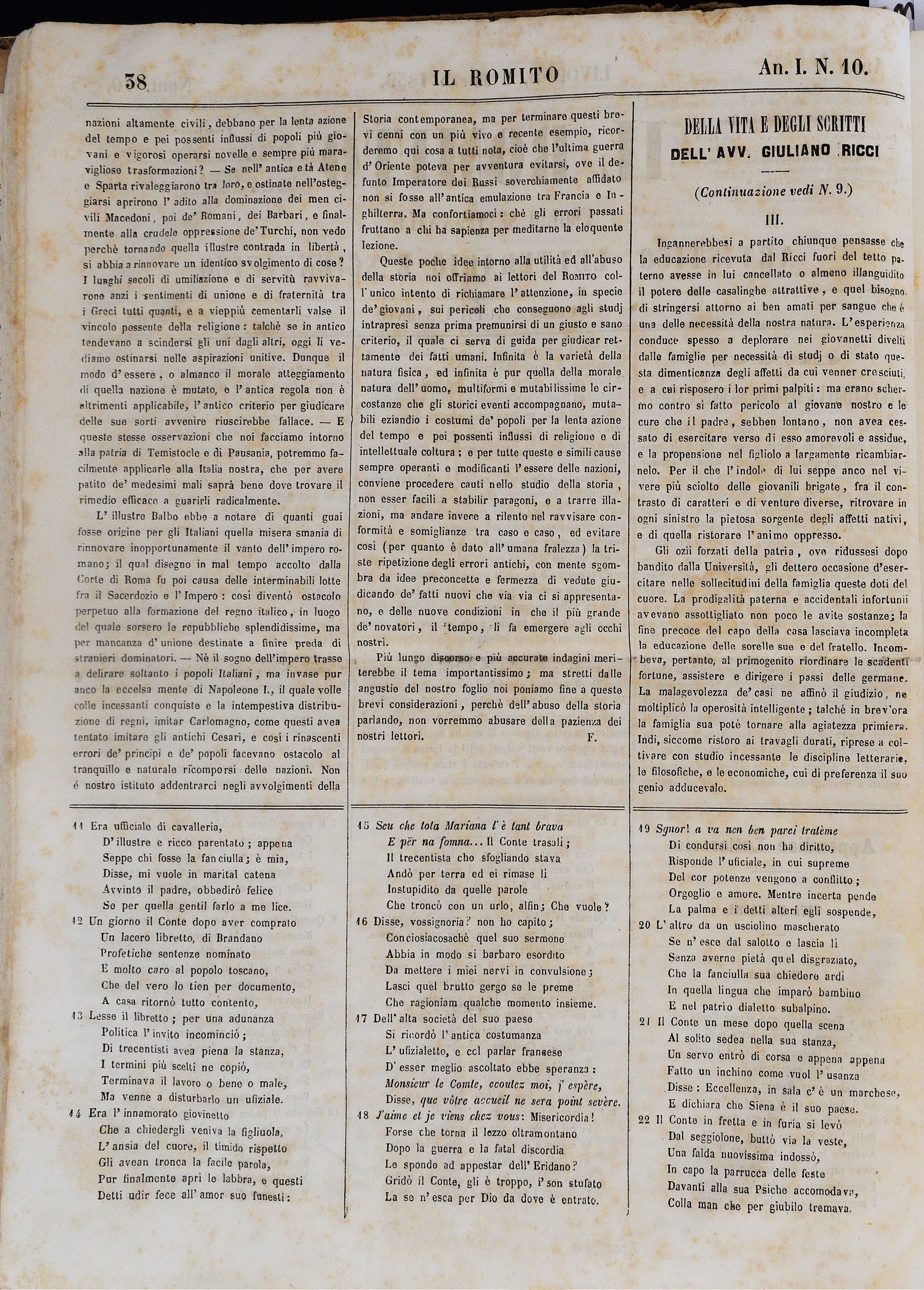 M. C.Della vita e degli scritti dell’avv. Giuliano Ricci (continua)pp. 38-39