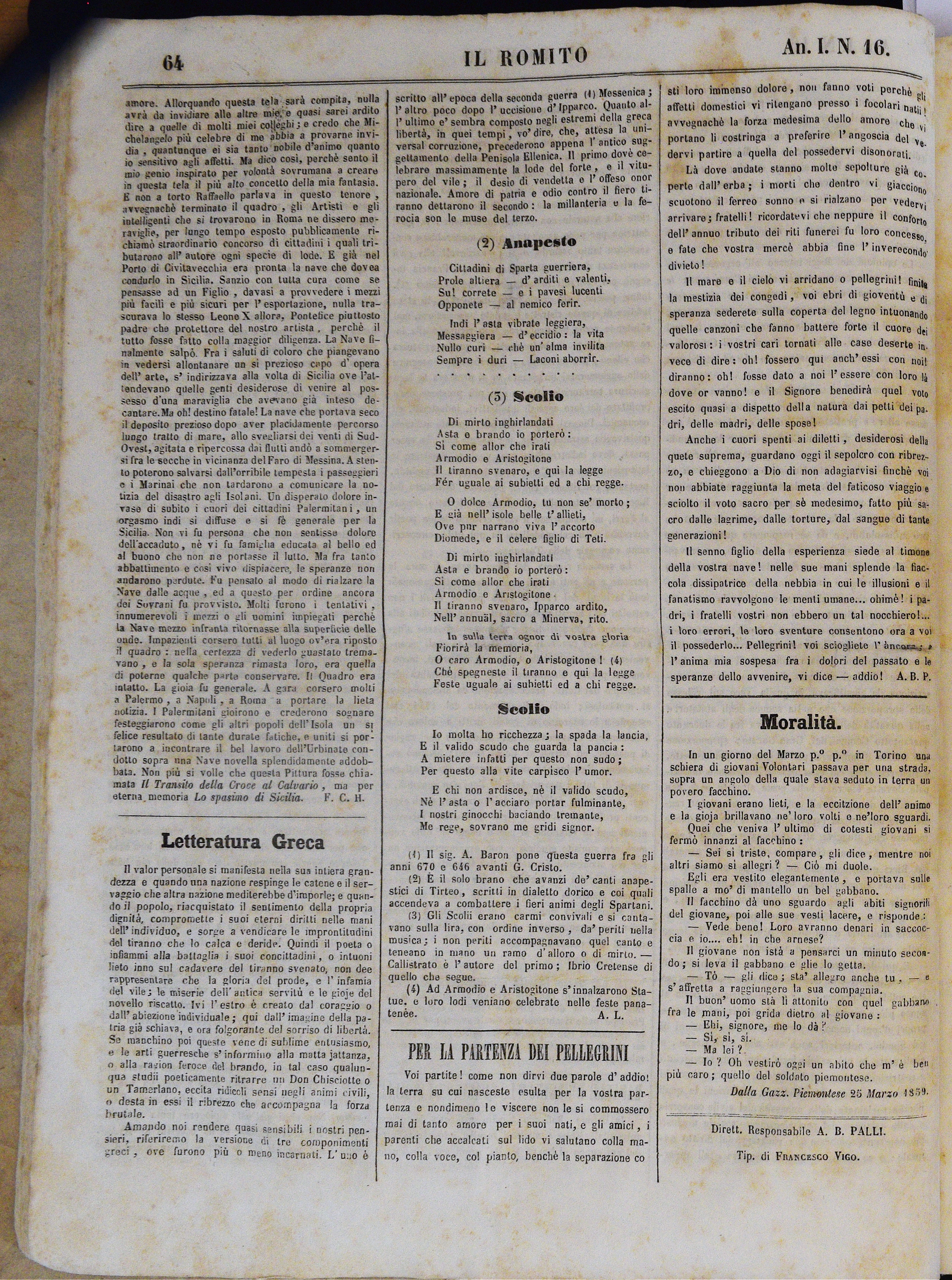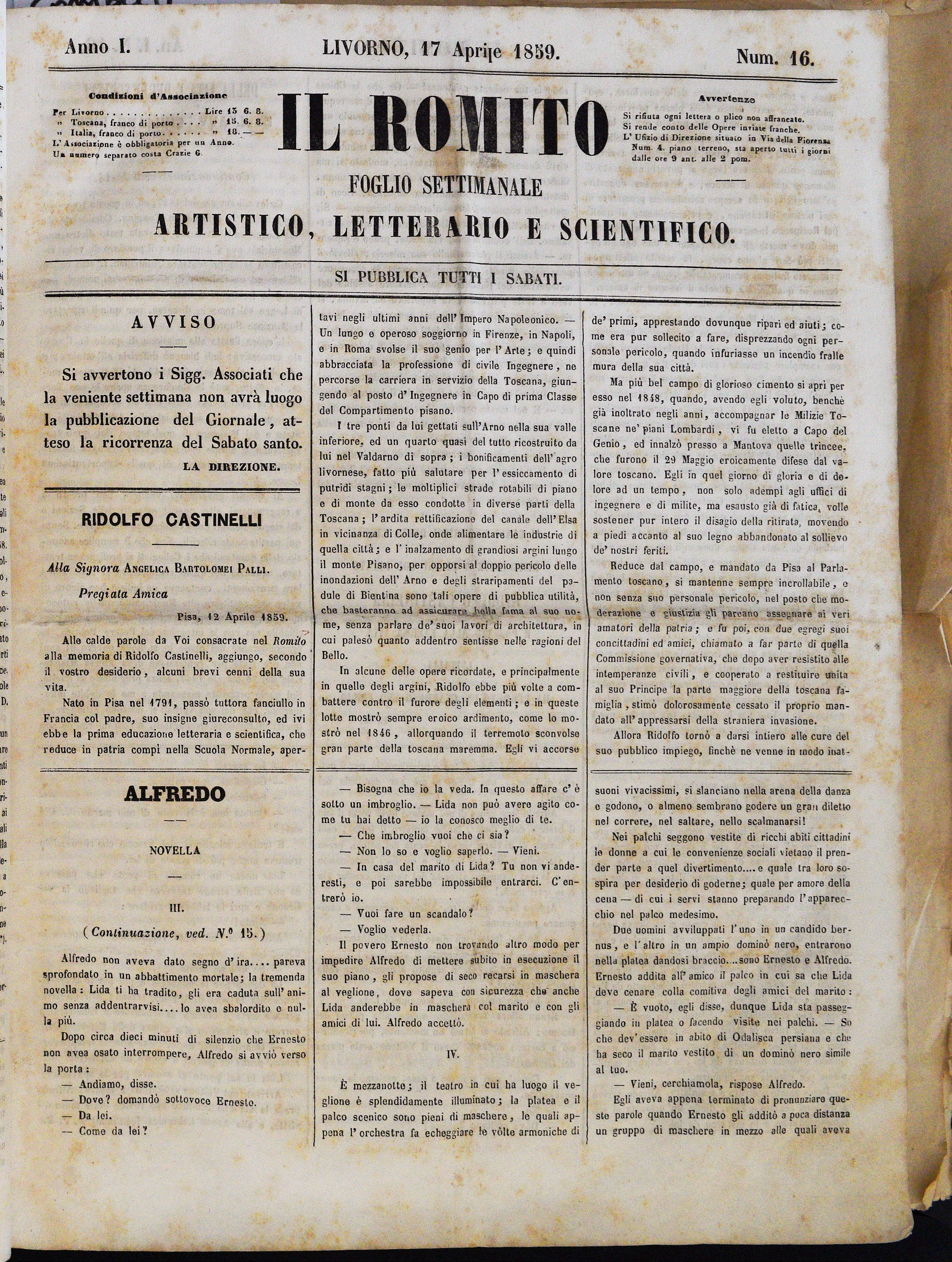 Anno I. Num. 16. Livorno, 17 Aprile 1859