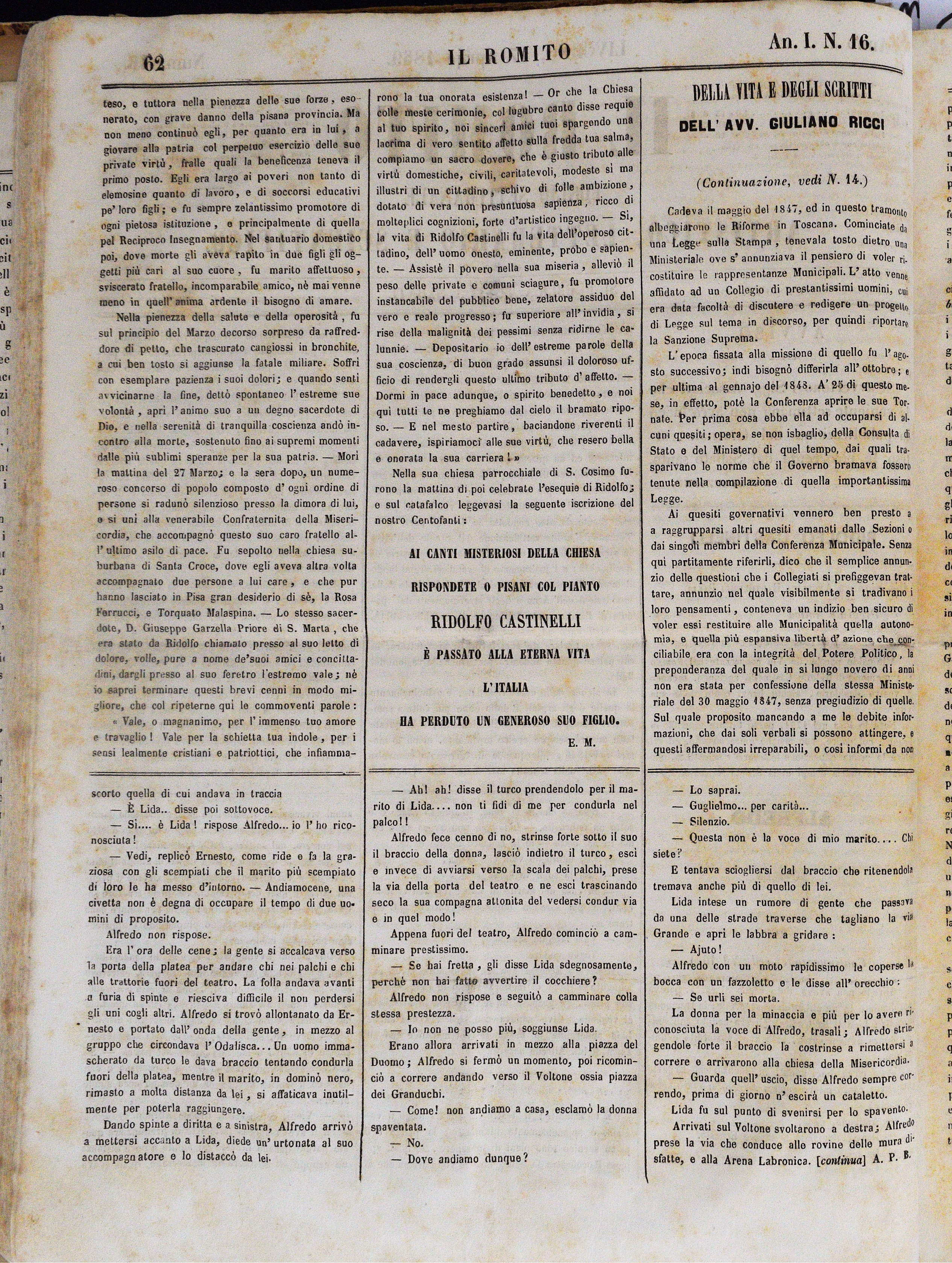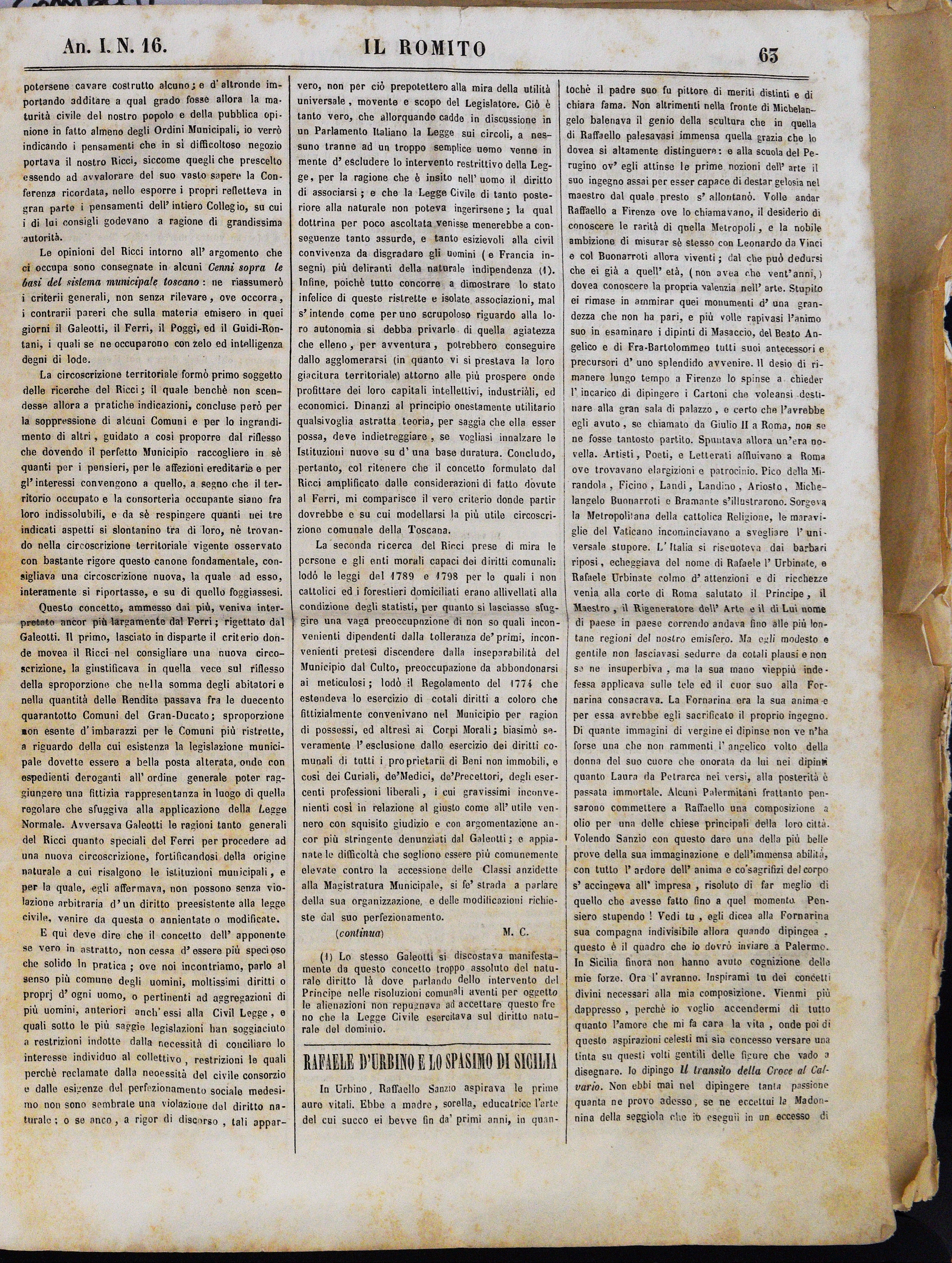 M. C.Della vita e degli scritti dell’avv. Giuliano Ricci (continua)pp. 62-63