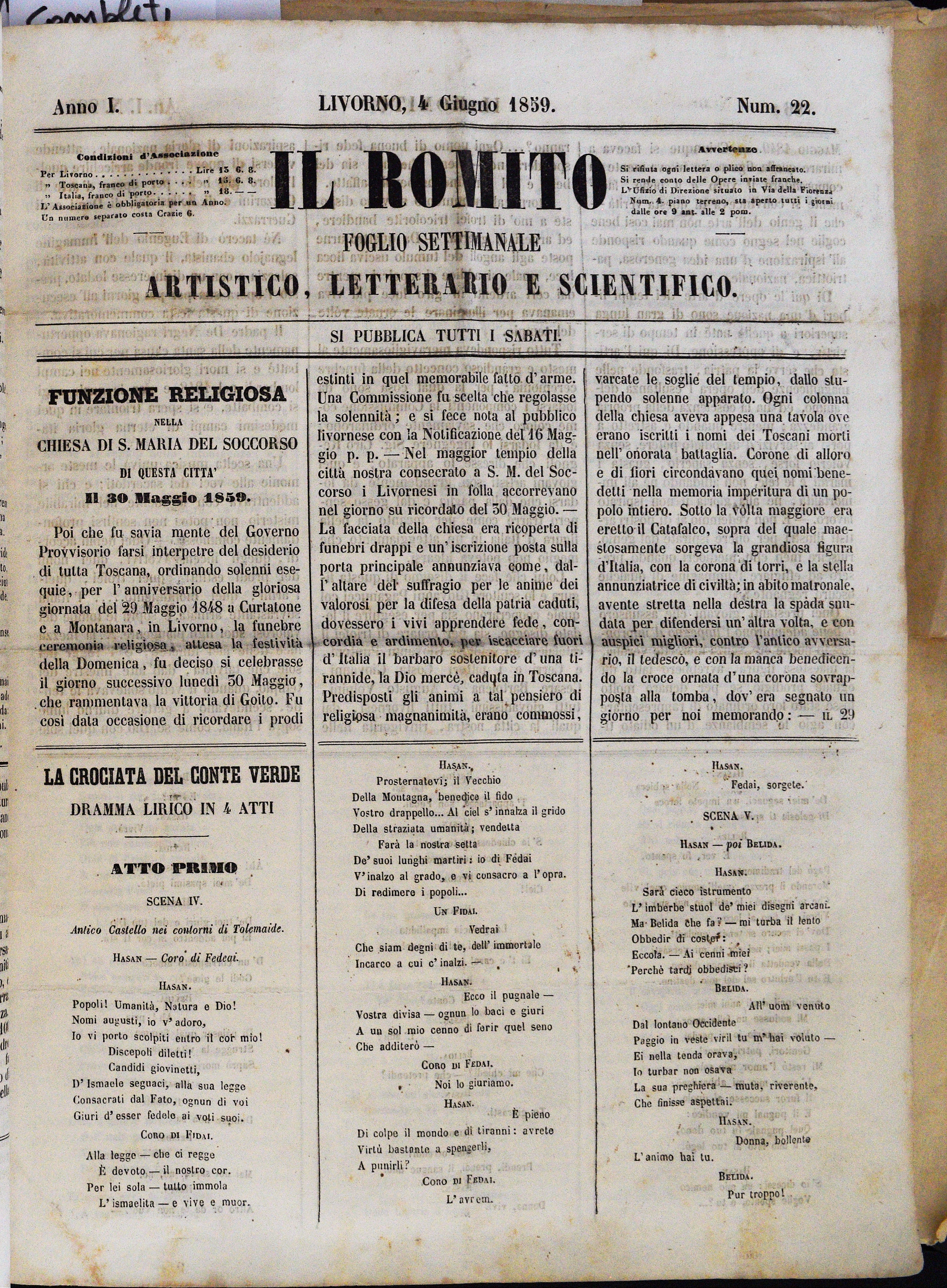 Anno I. Num. 22. Livorno, 4 Giugno 1859