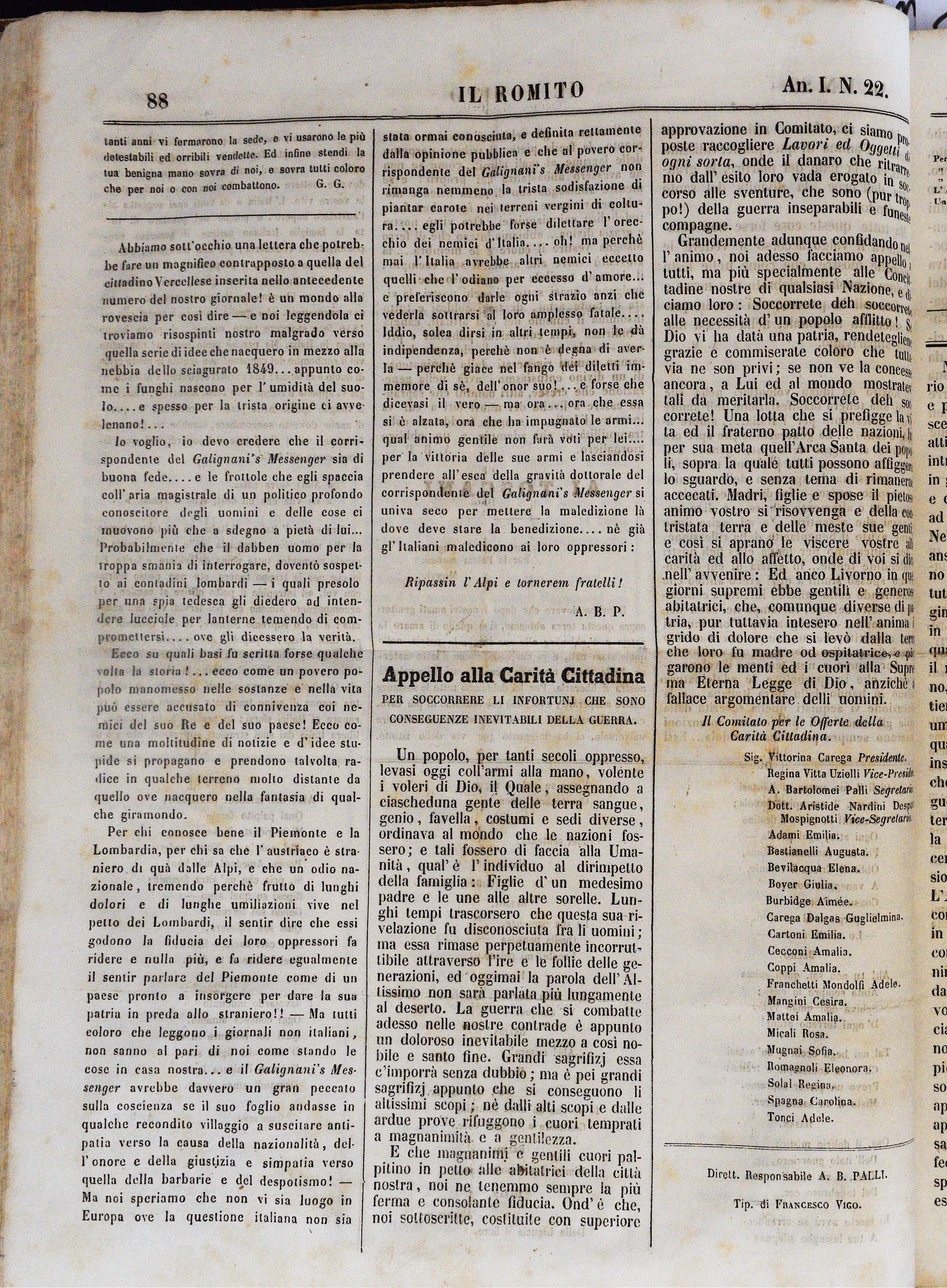 A.B.PSul rapporto dei Piemontesi e Lombardi con gli austriaci in risposta al Galignani’s Messengerpp. 88