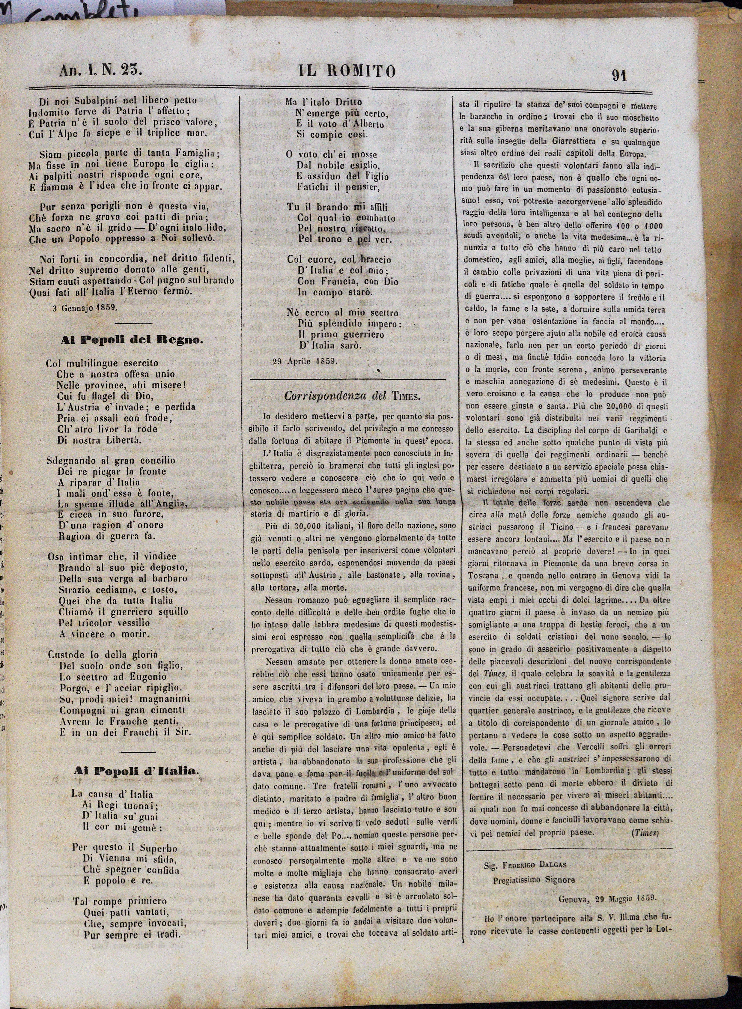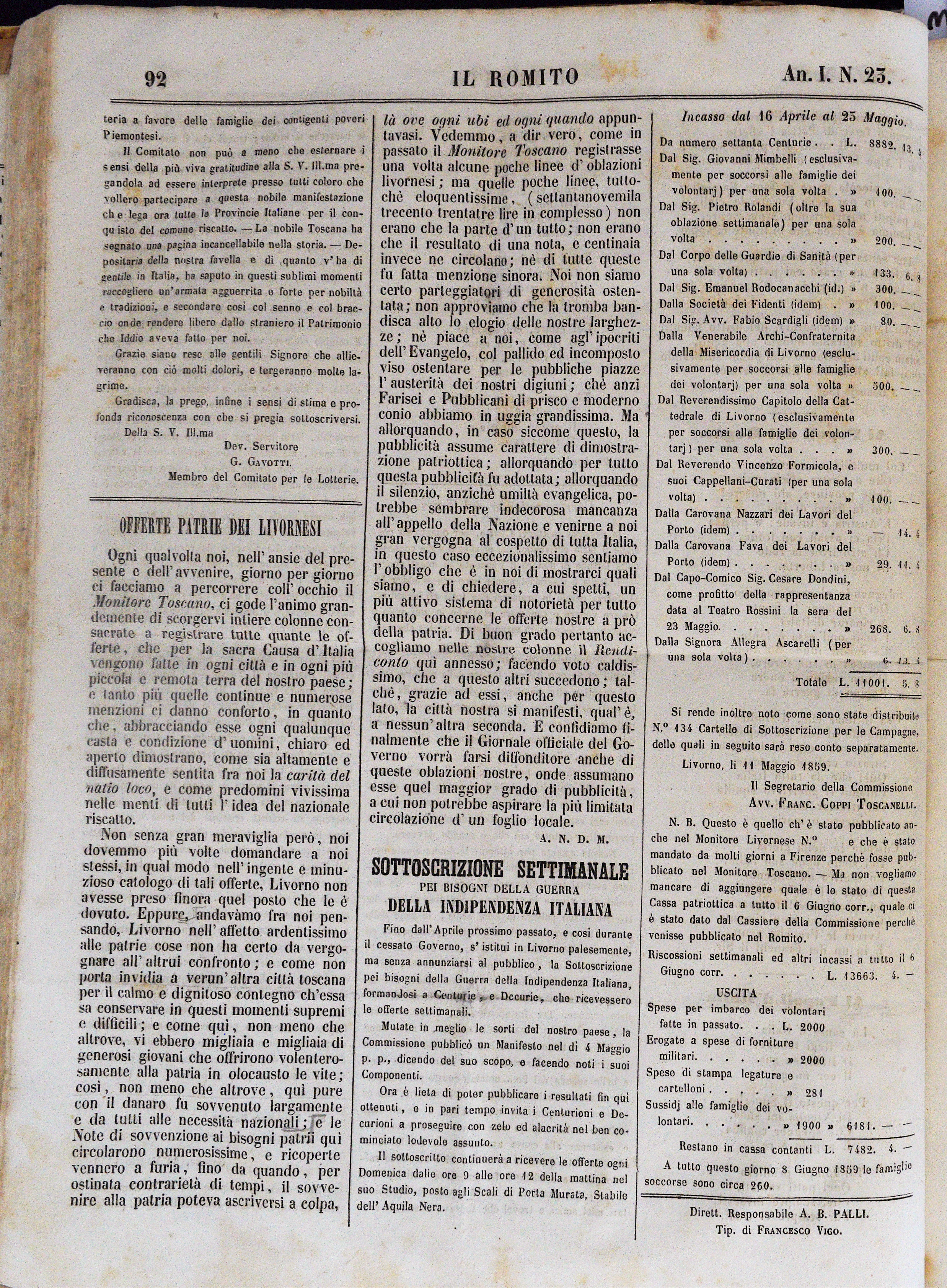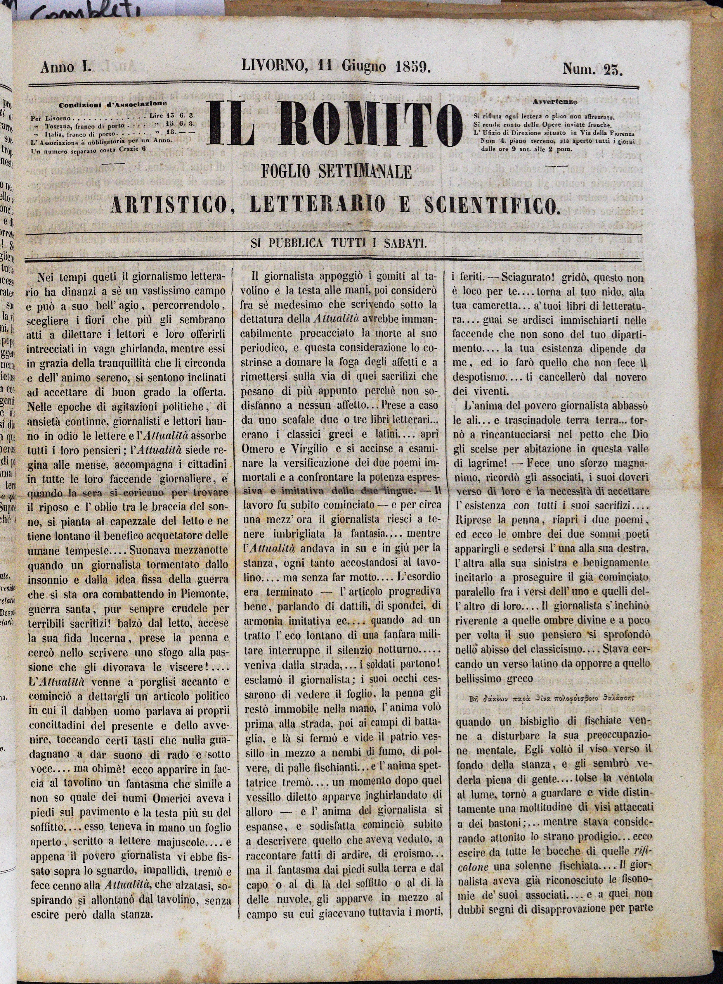 Anno I. Num. 23. Livorno, 11 Giugno 1859