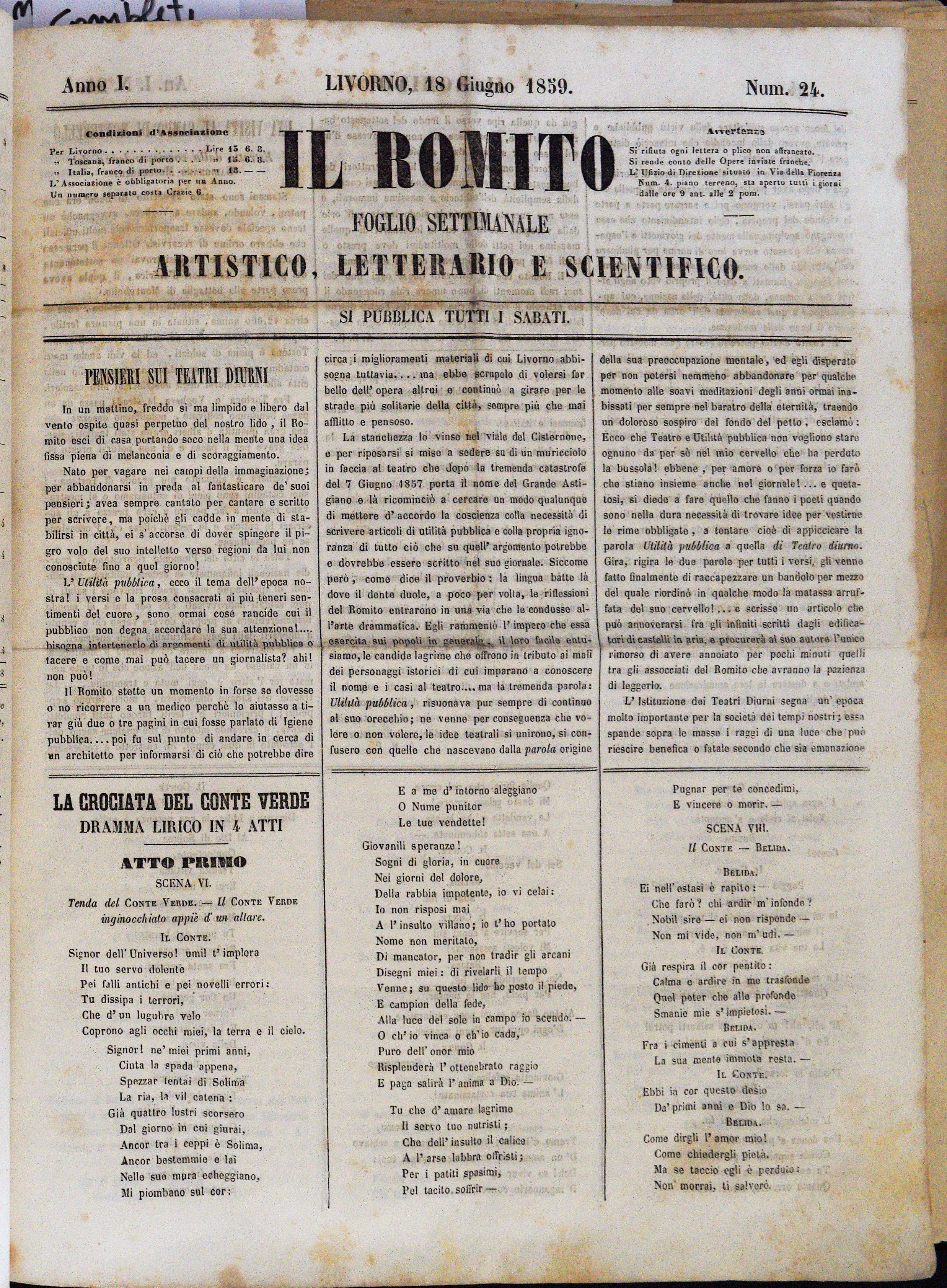 Anno I. Num. 24. Livorno, 18 Giugno 1859