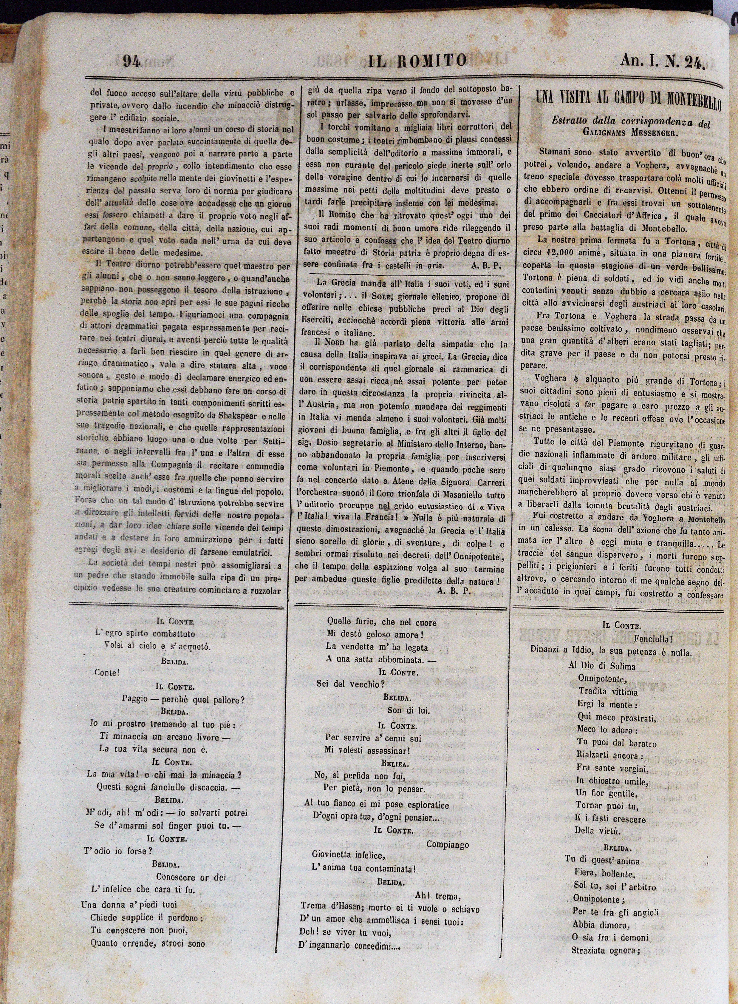Una visita al campo di Montebello. Estratto dalla corrispondenza del Galignani’s Messengerpp. 94-95