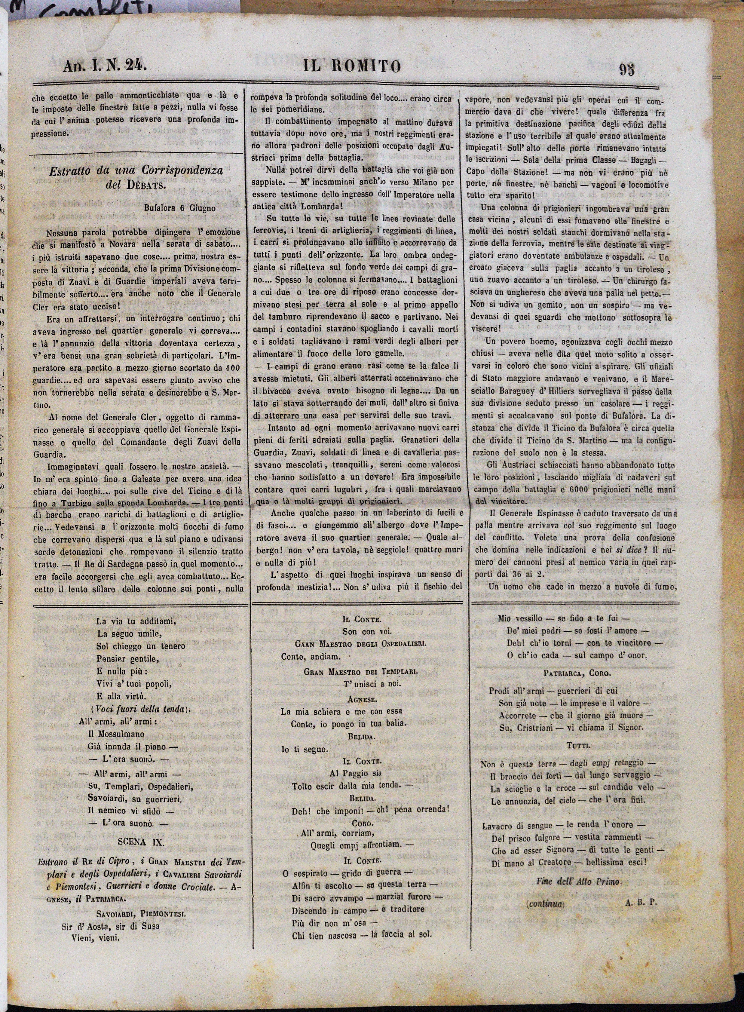 Bufalora 6 Giugno (?)Estratto da una Corrispondenza del Débats.pp. 95-96