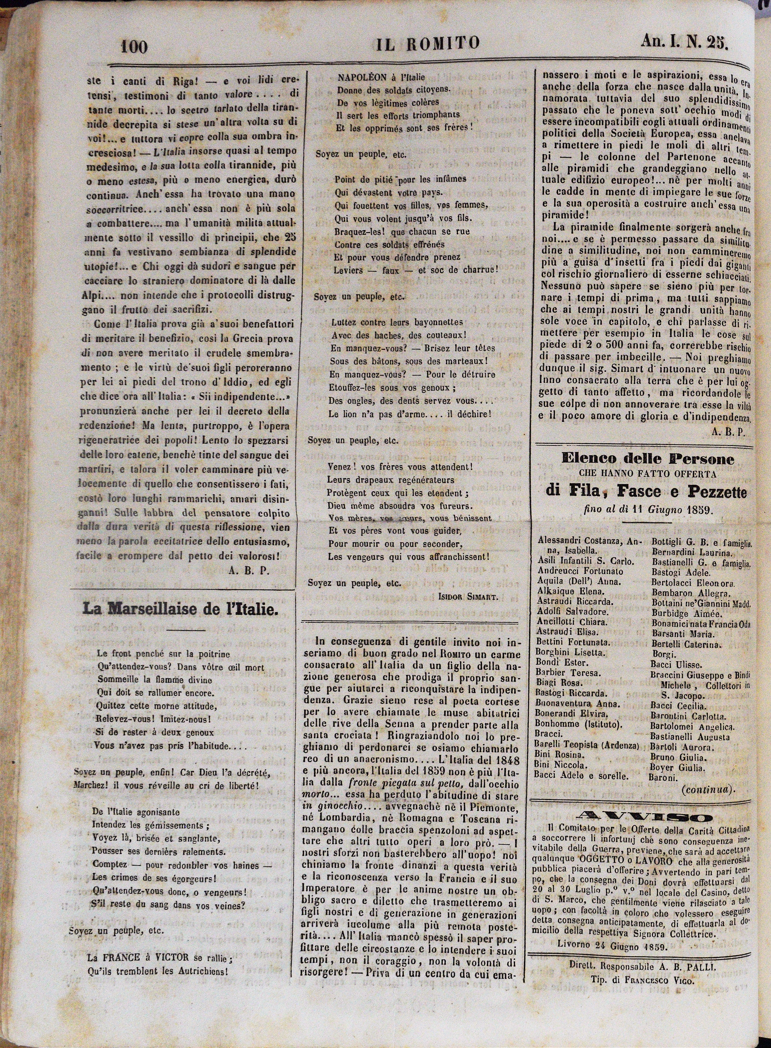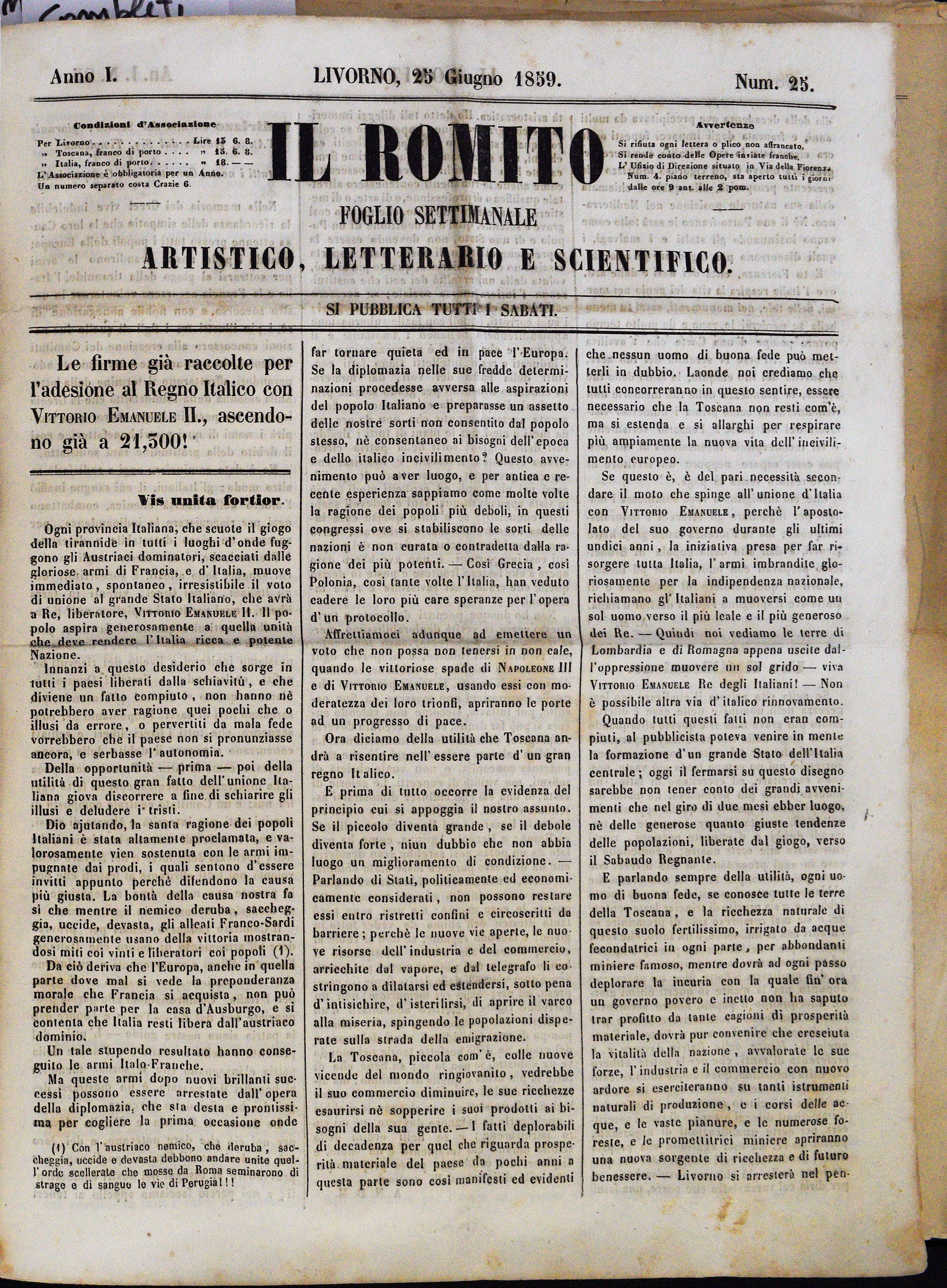 Anno I. Num. 25. Livorno, 25 Giugno 1859