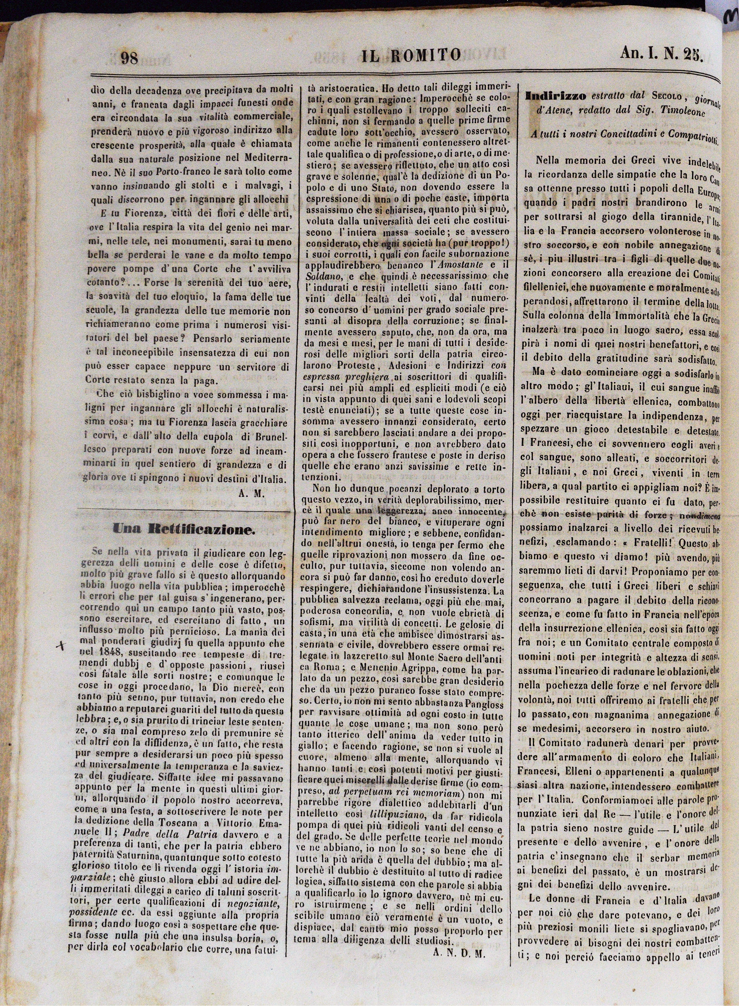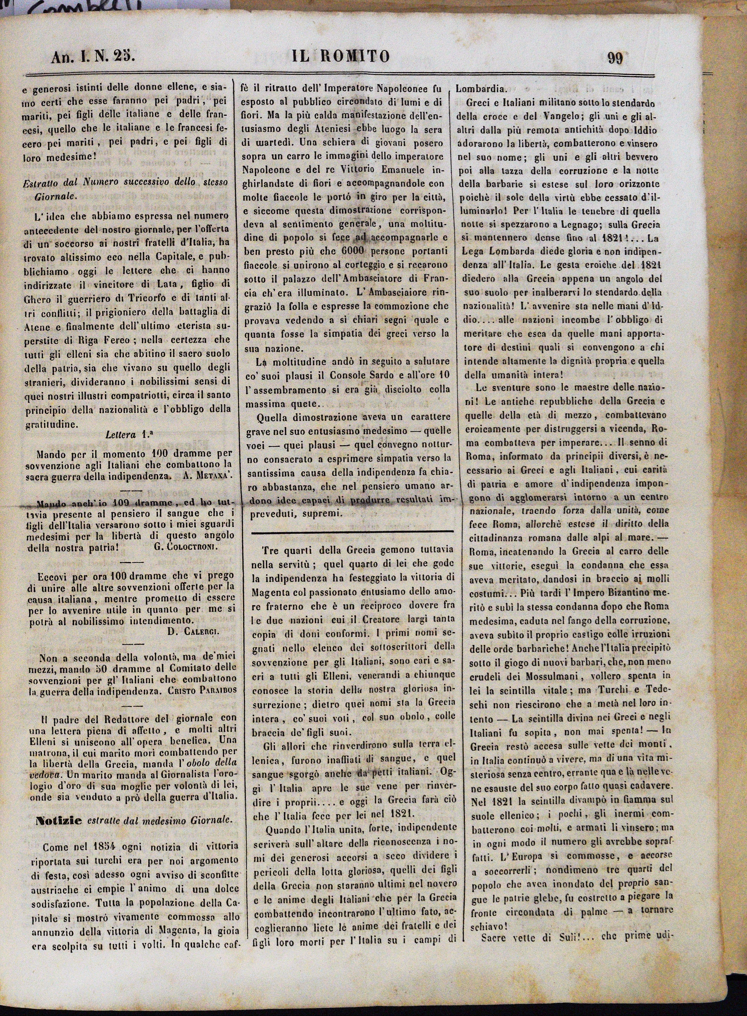 (?)Un estratto dal «Secolo» (1), giornale d’Atene, redatto dal Sig. Timoleonepp. 98-99