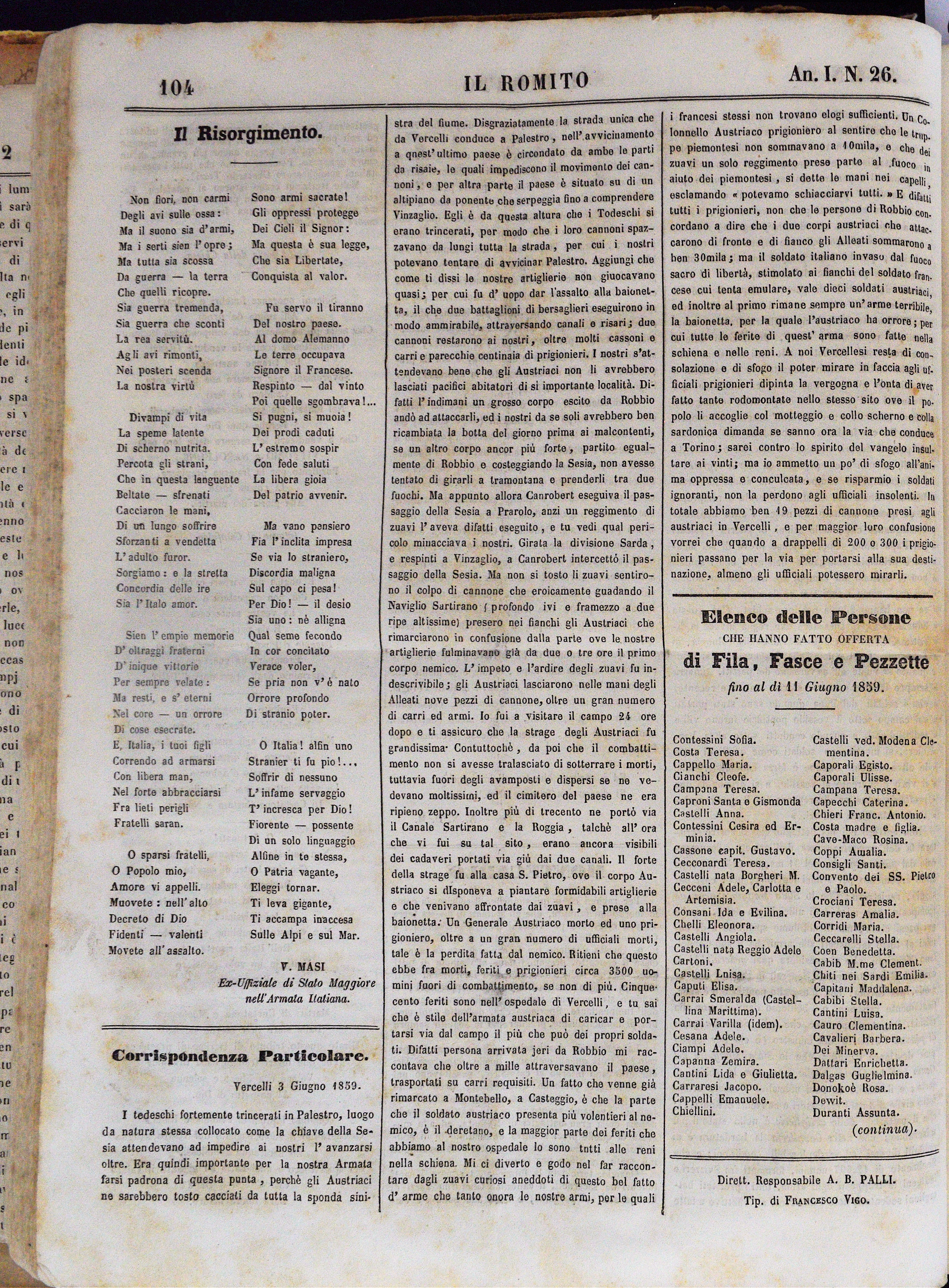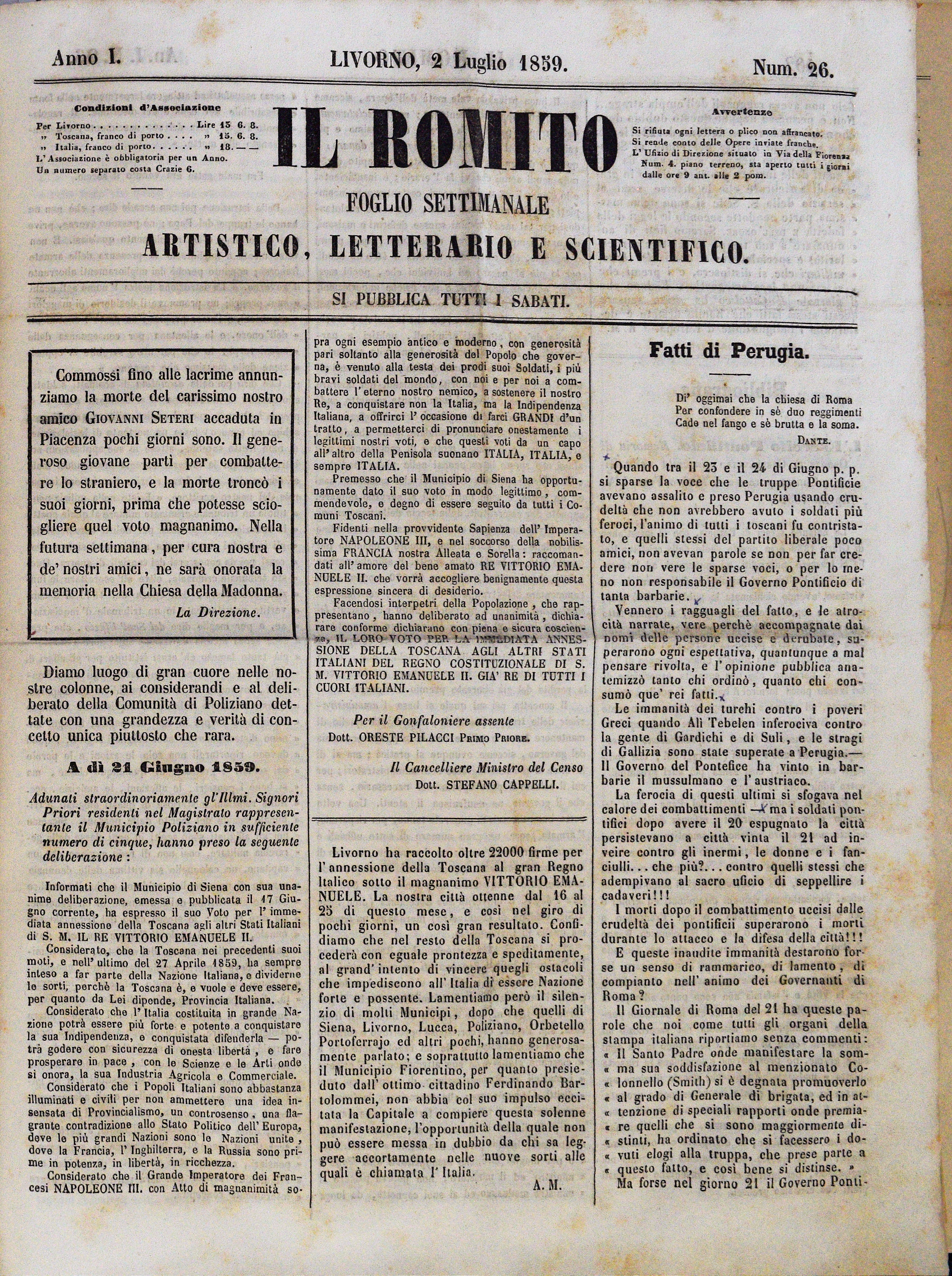 Anno I. Num. 26. Livorno, 2 Luglio 1859