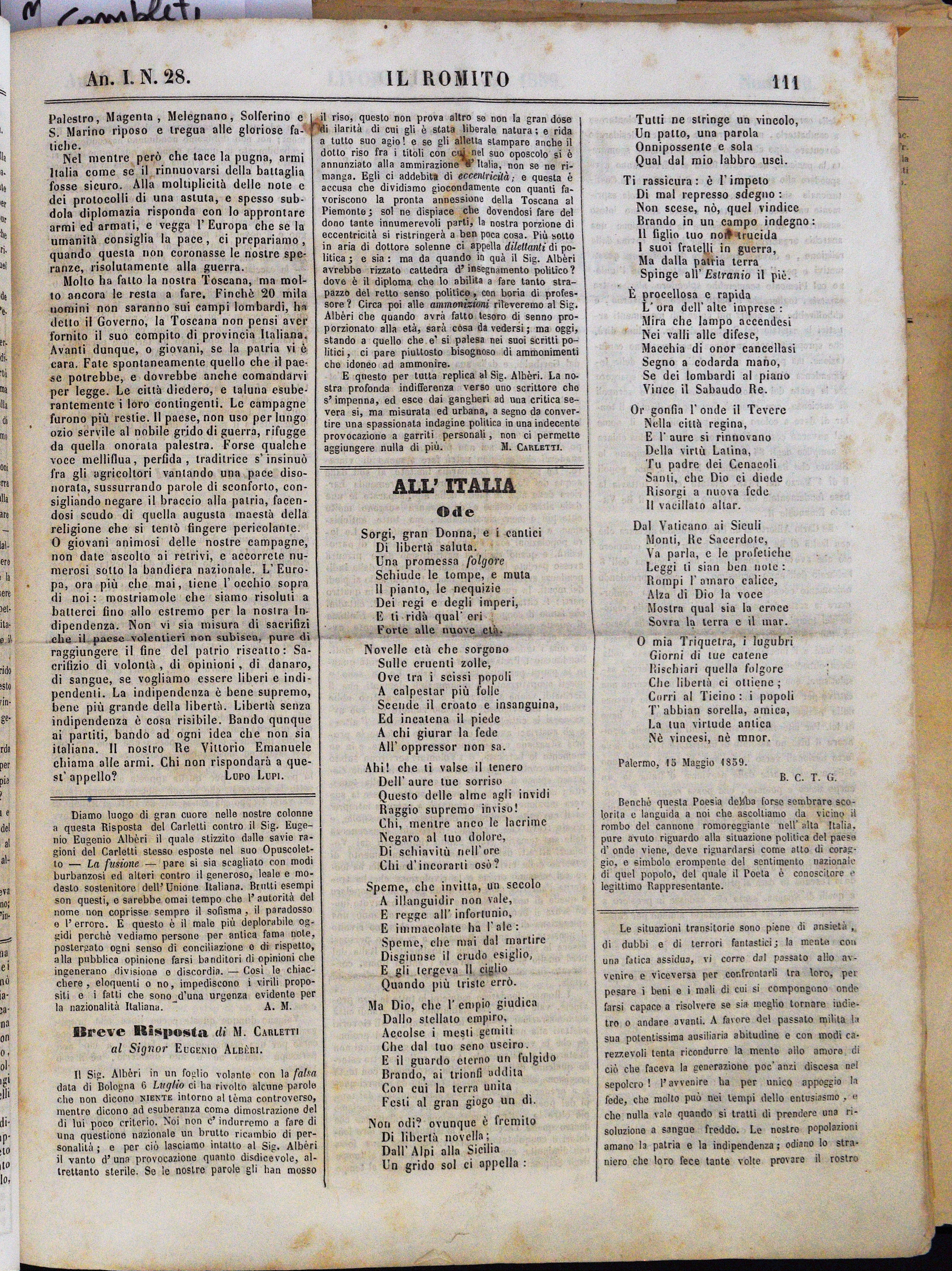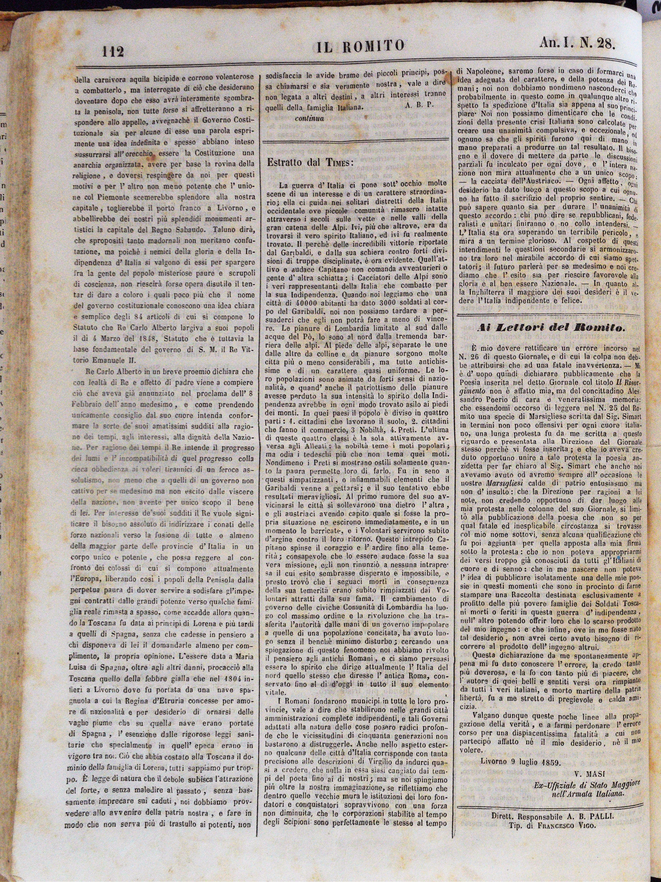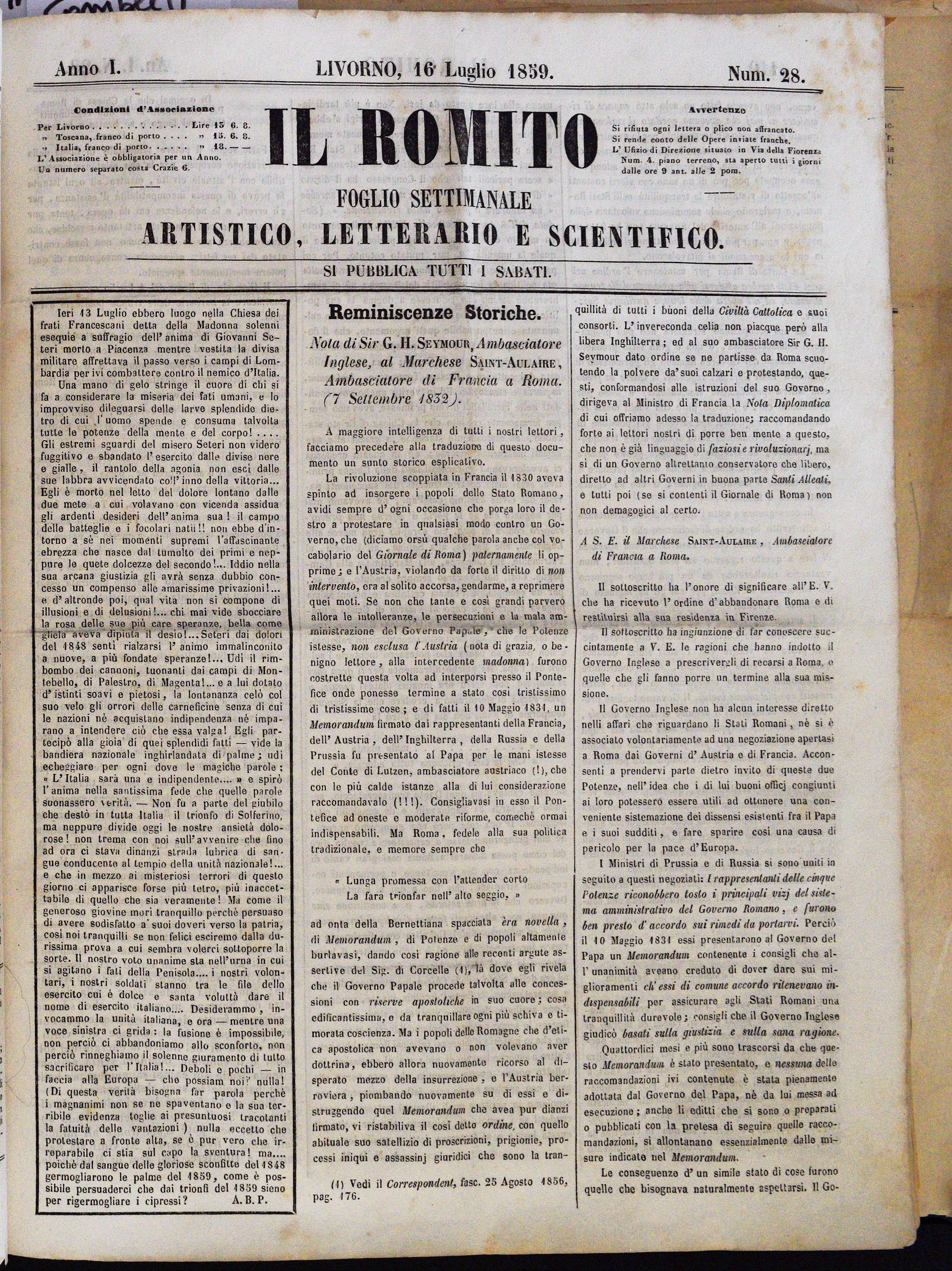 Anno I. Num. 28. Livorno, 16 Luglio 1859
