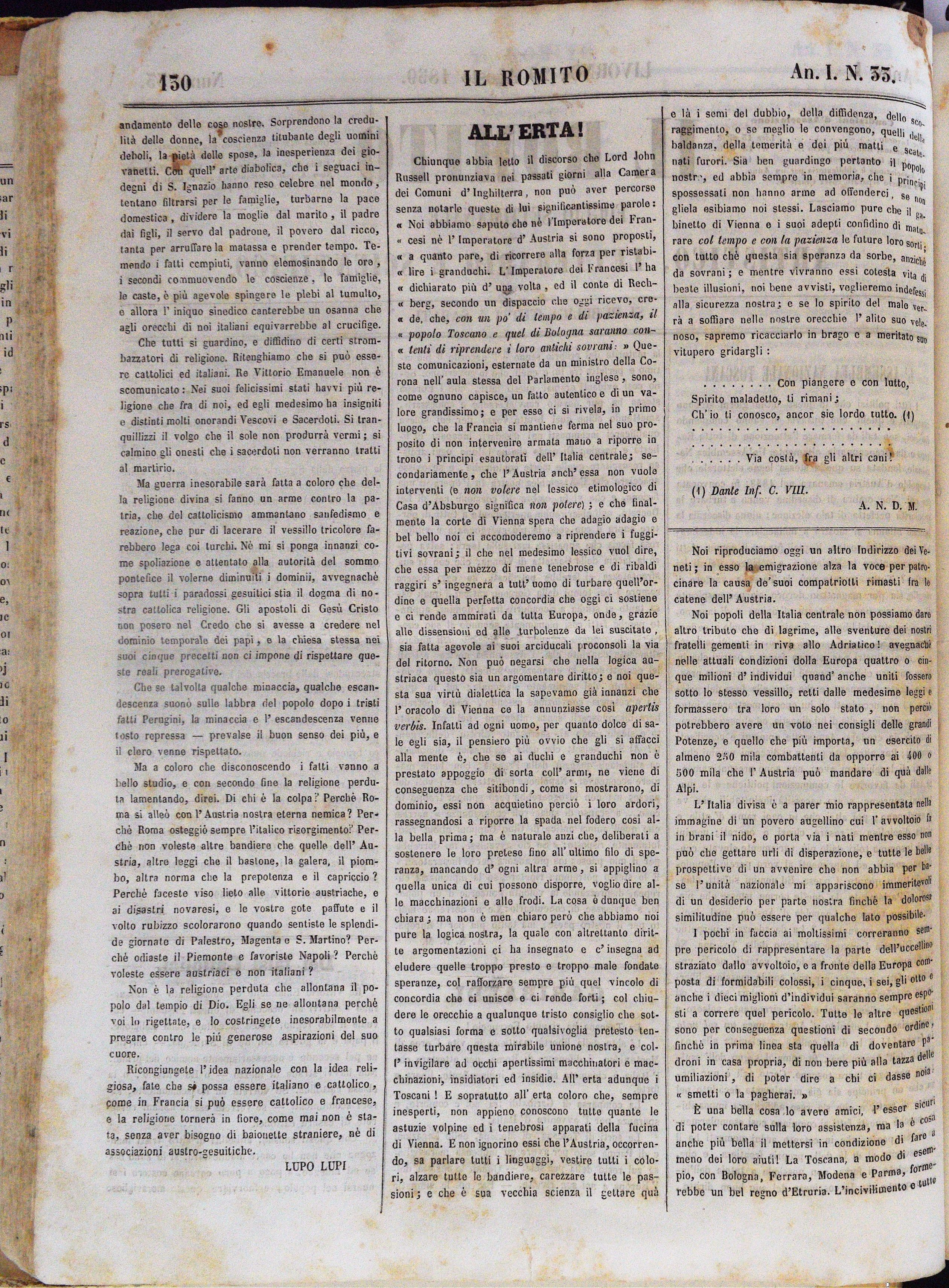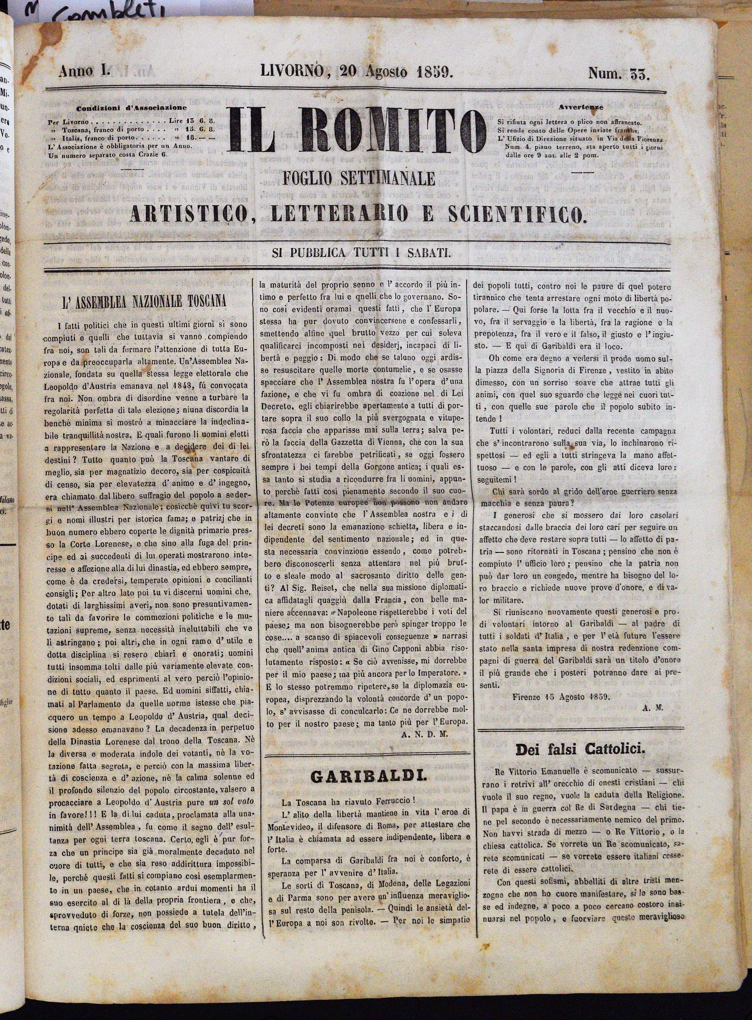 Anno I. Num. 33. Livorno, 20 Agosto 1859