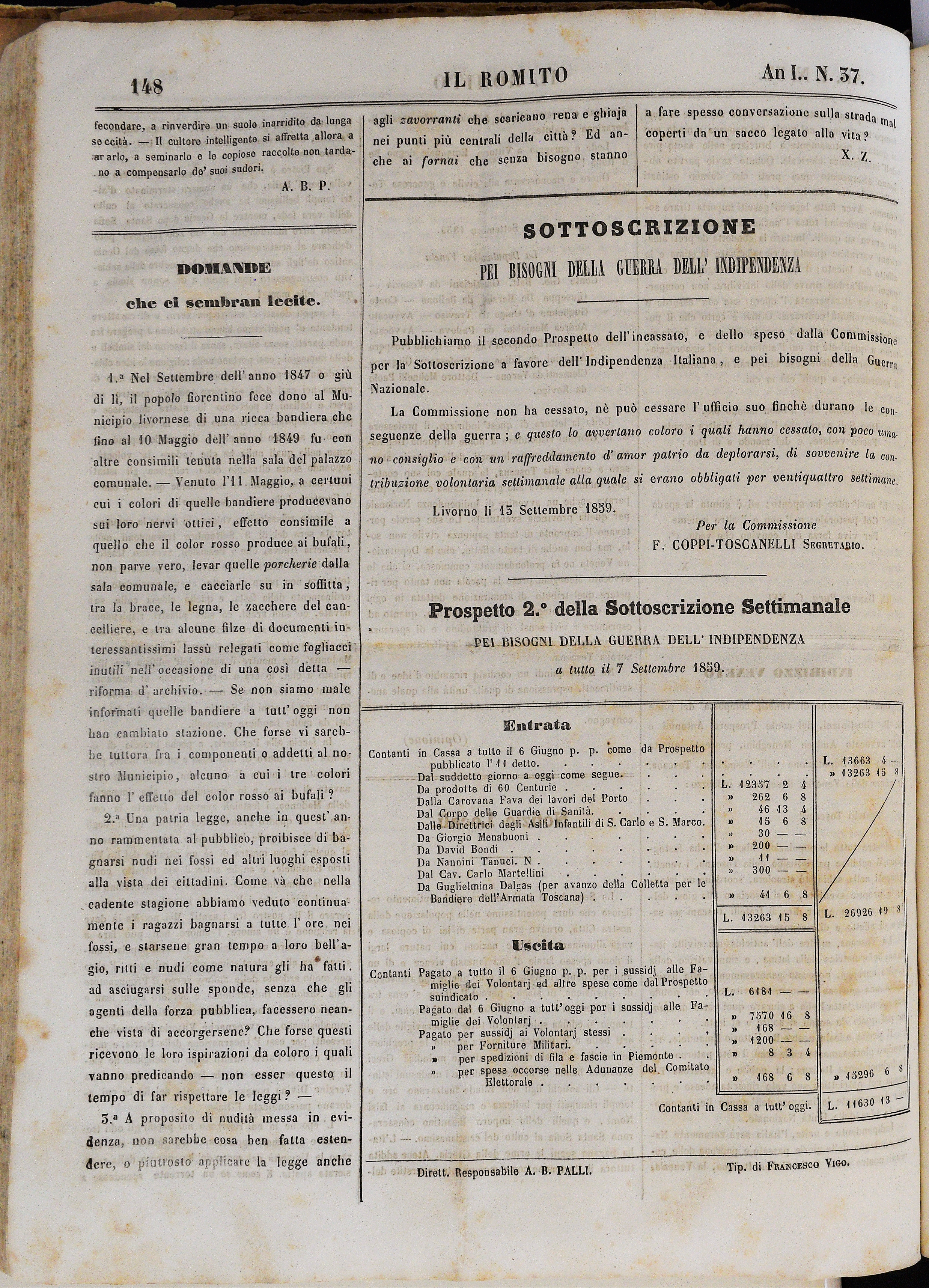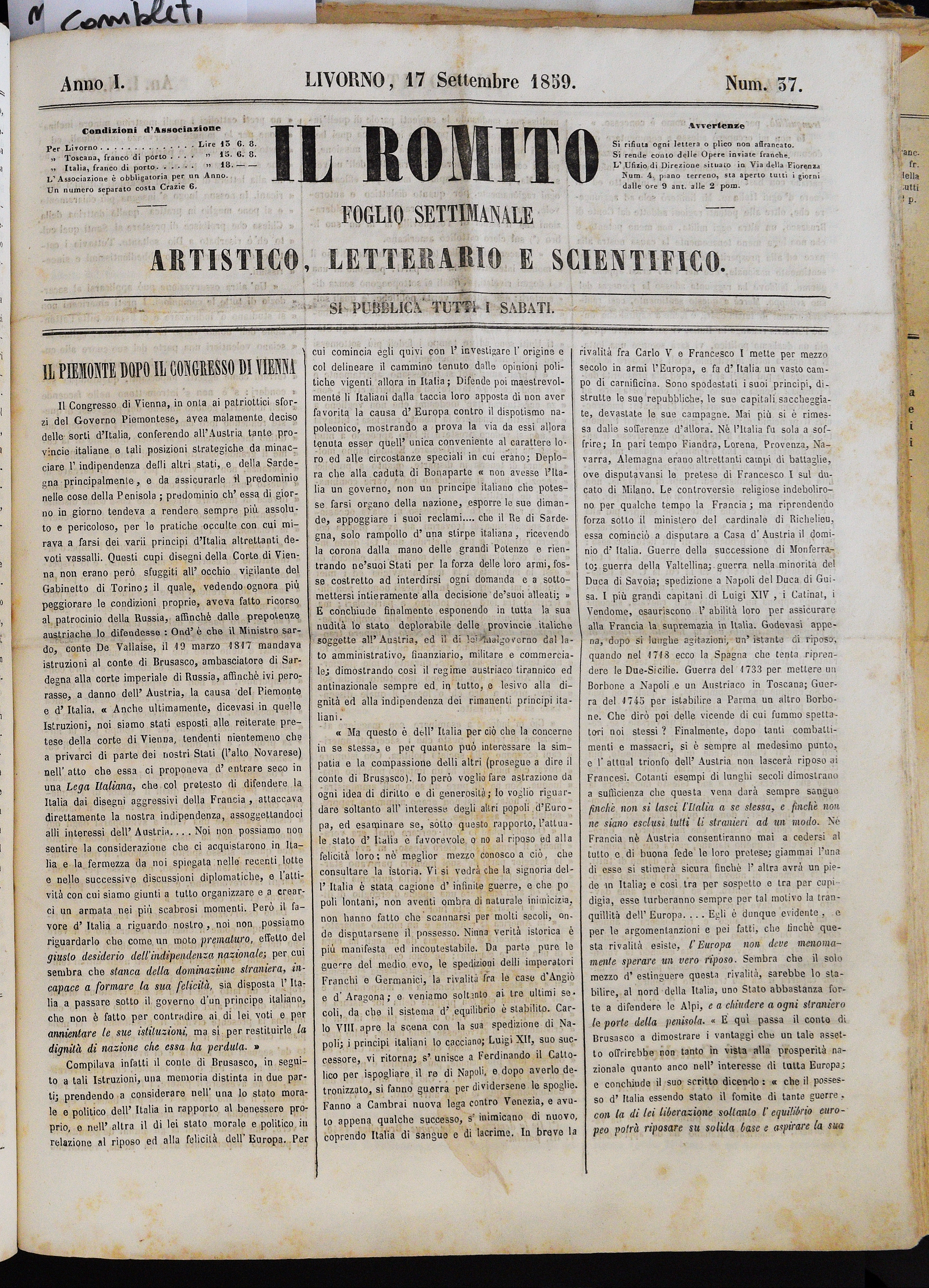 Anno I. Num. 37. Livorno, 17 Settembre 1859
