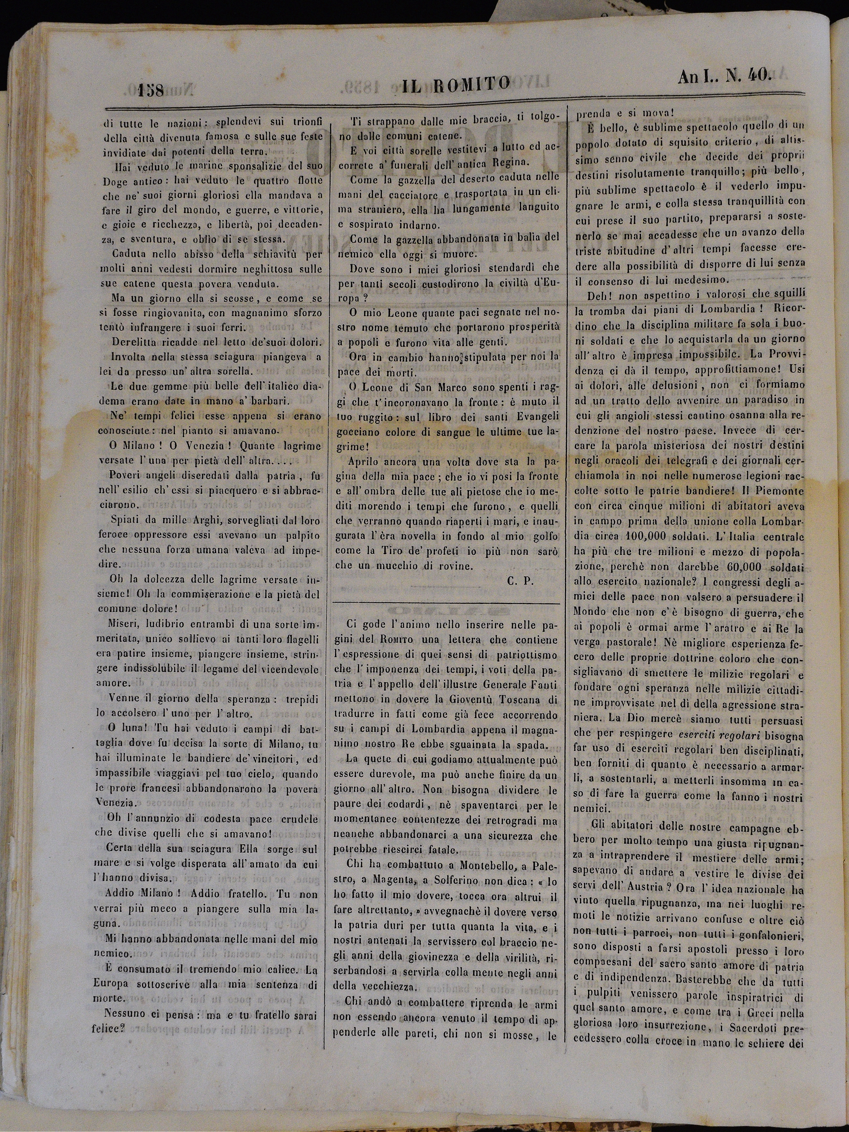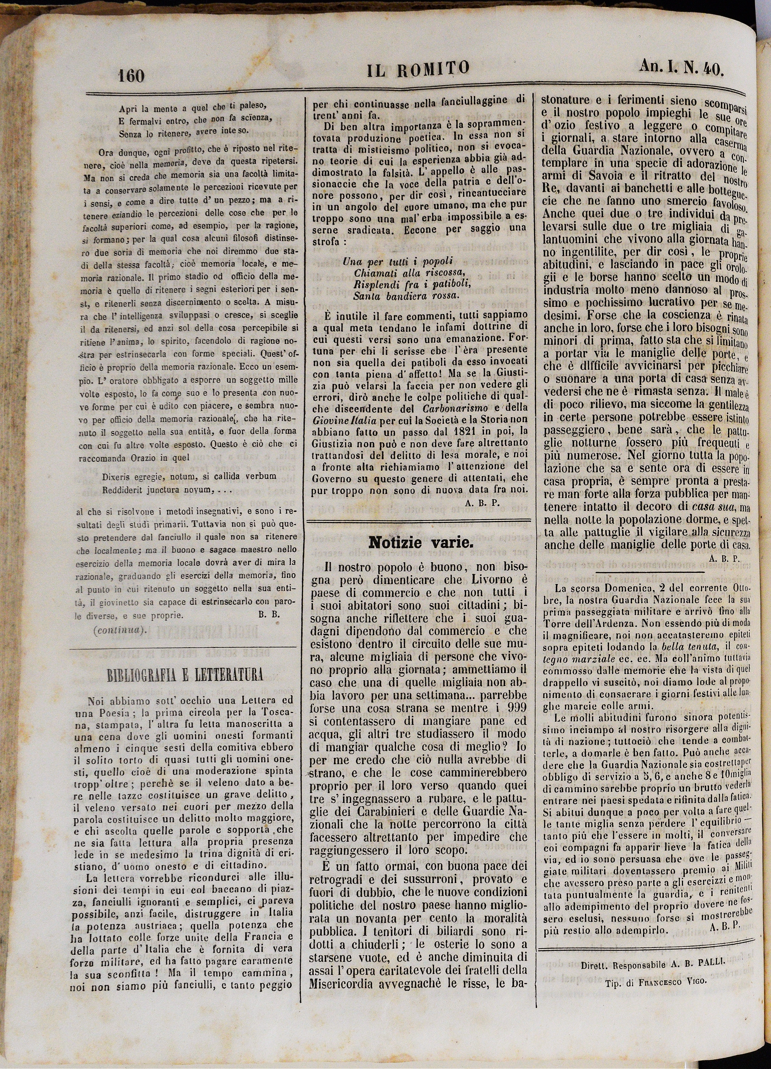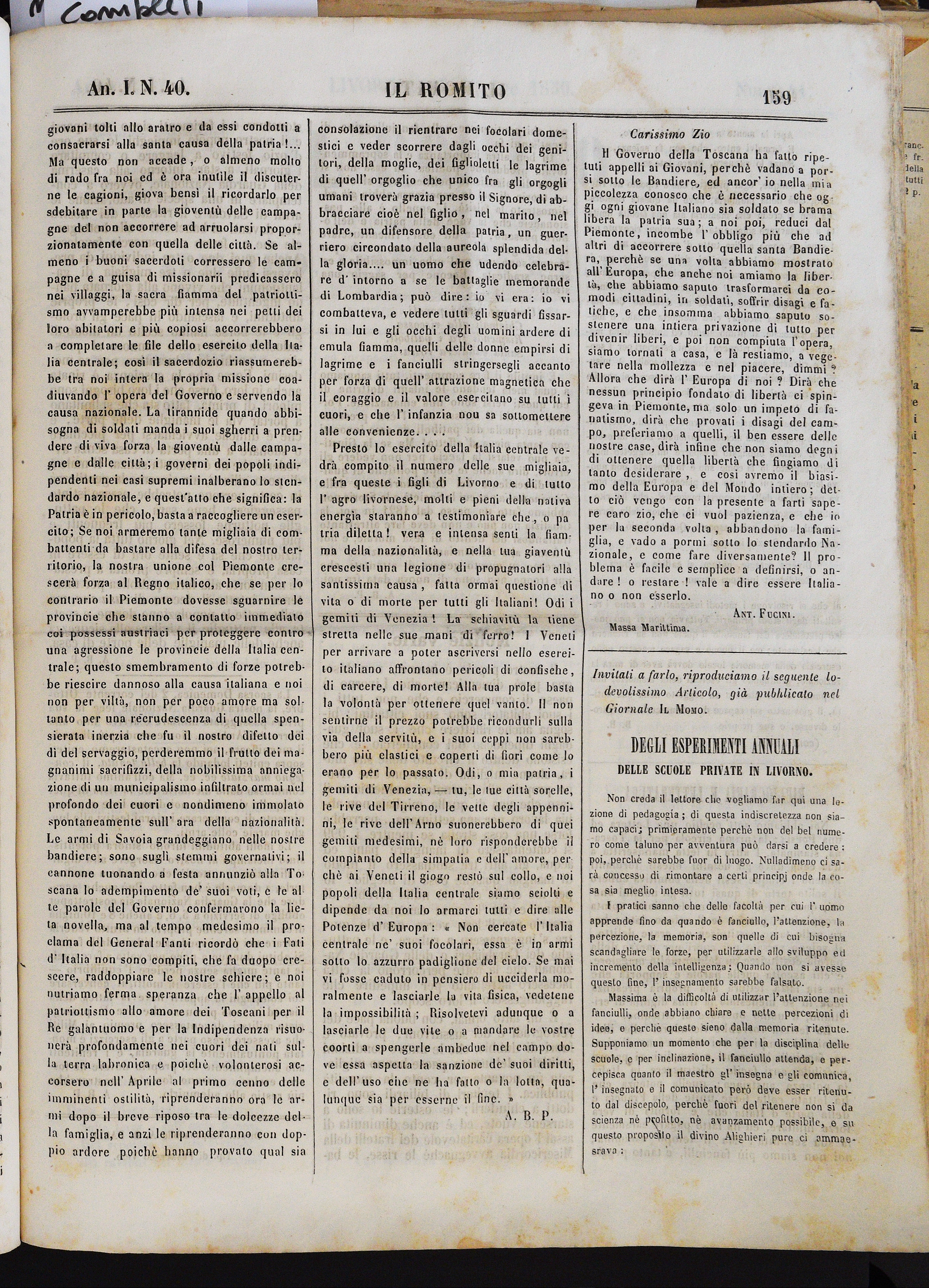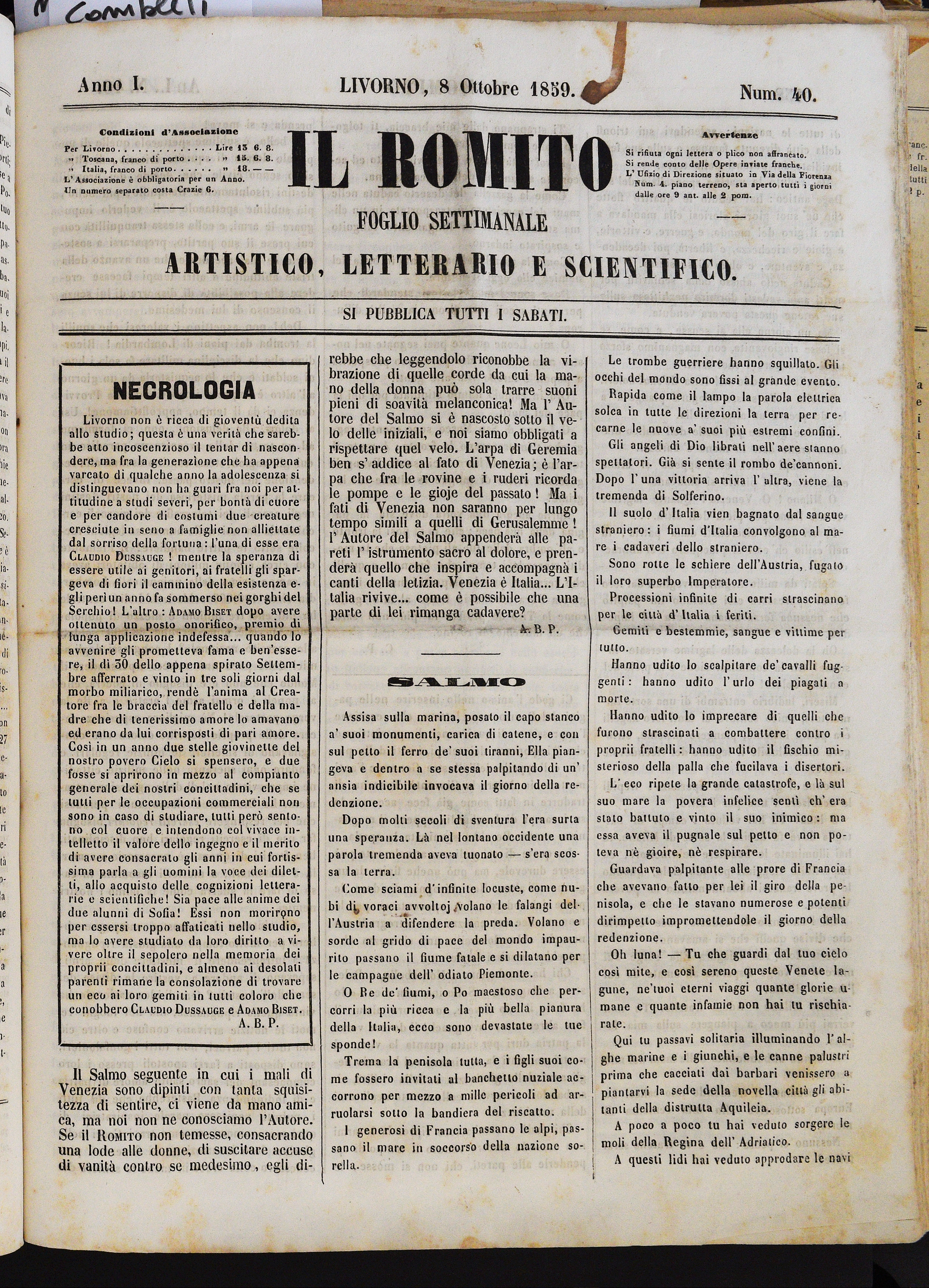 Anno I. Num. 40. Livorno, 8 Ottobre 1859