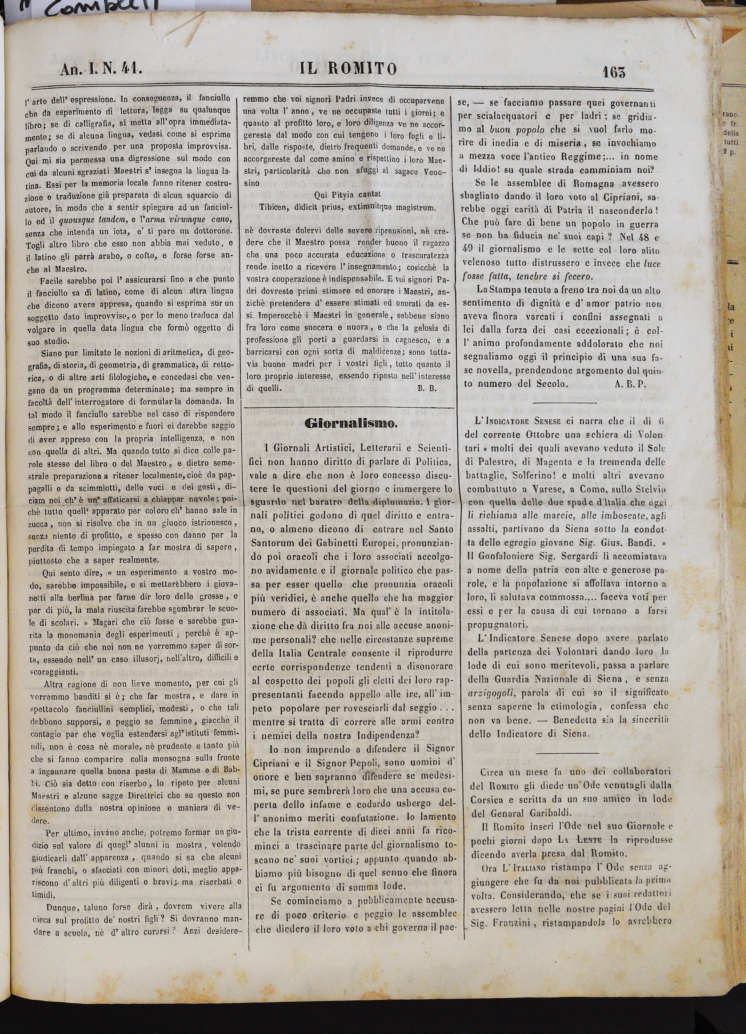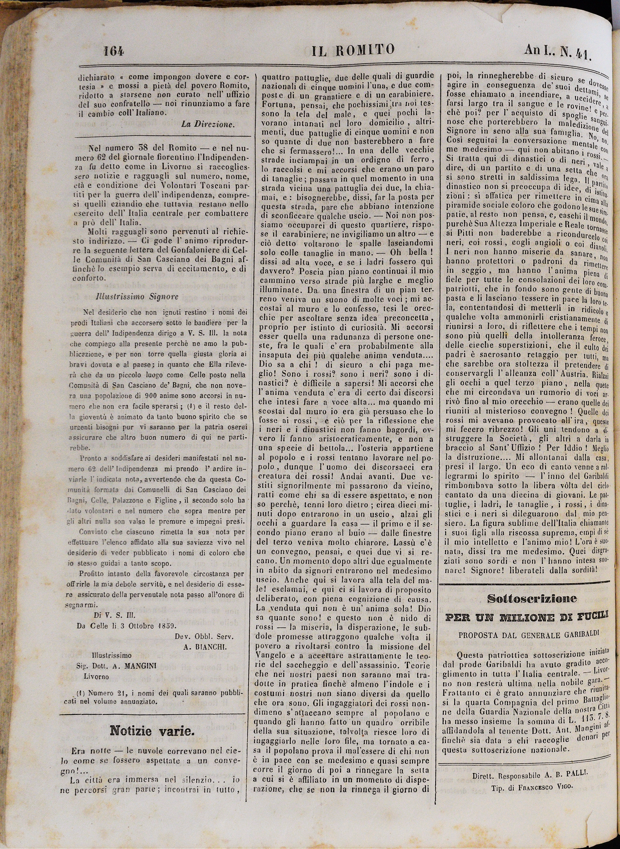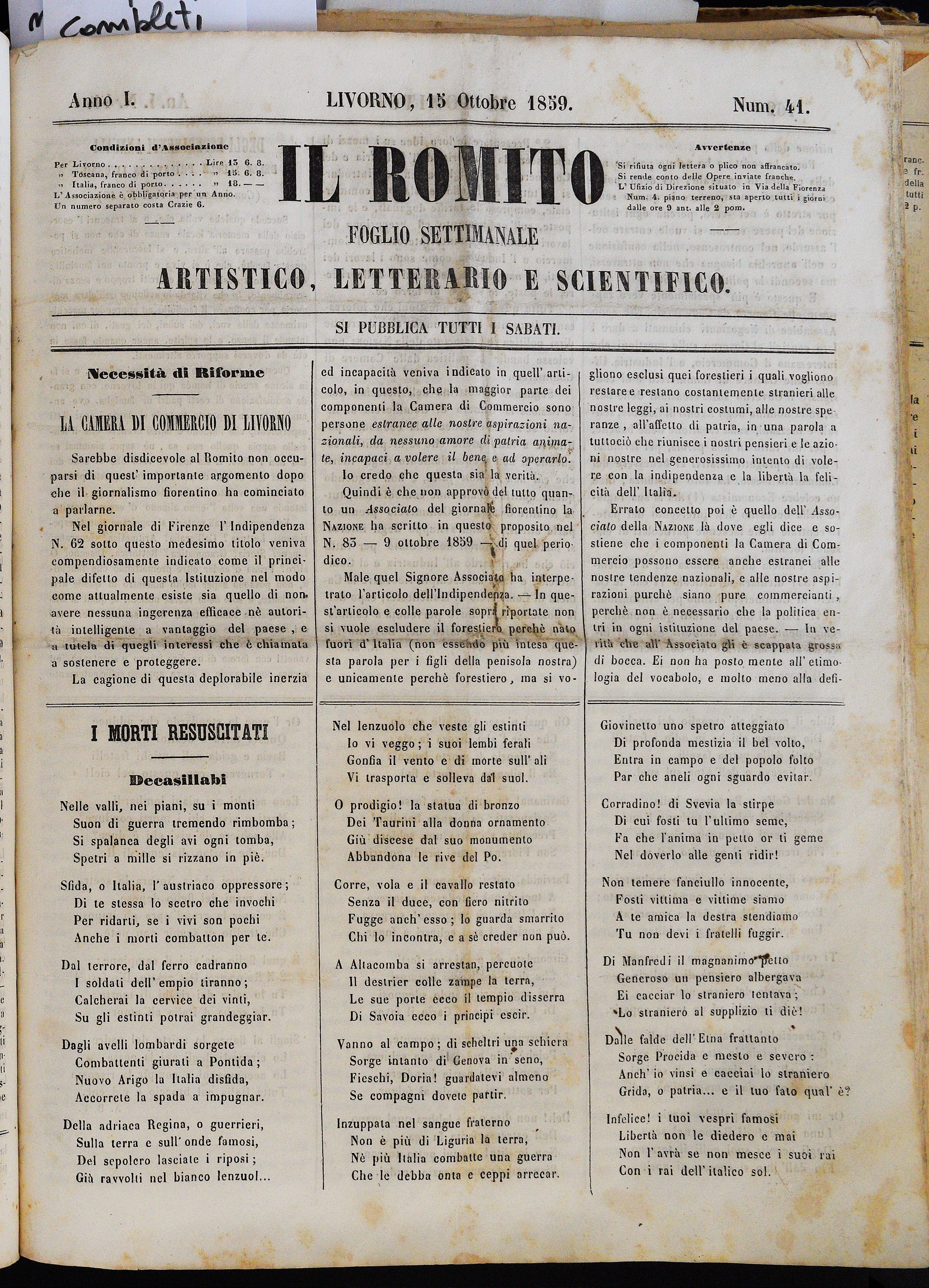 Anno I. Num. 41. Livorno, 15 Ottobre 1859
