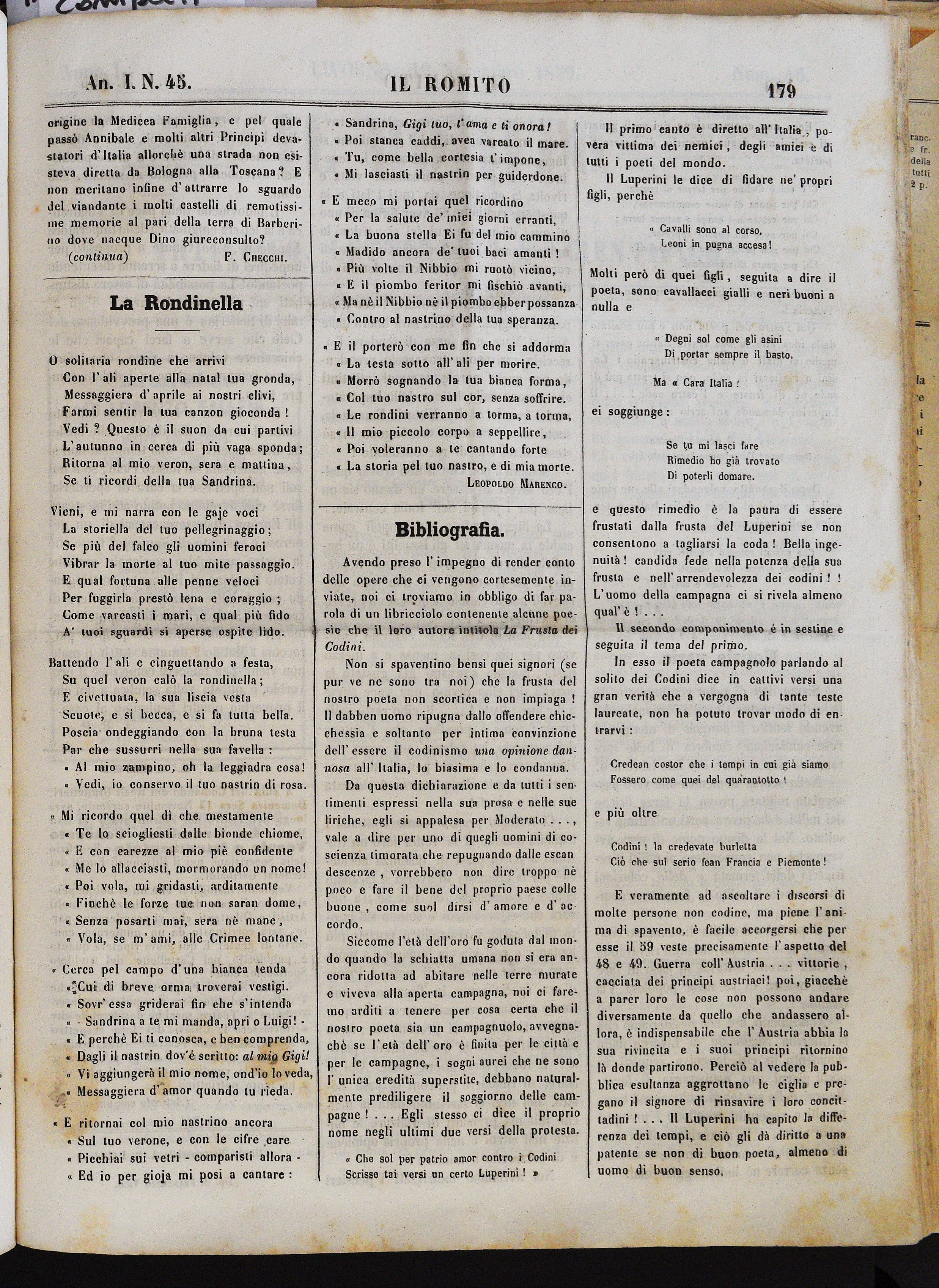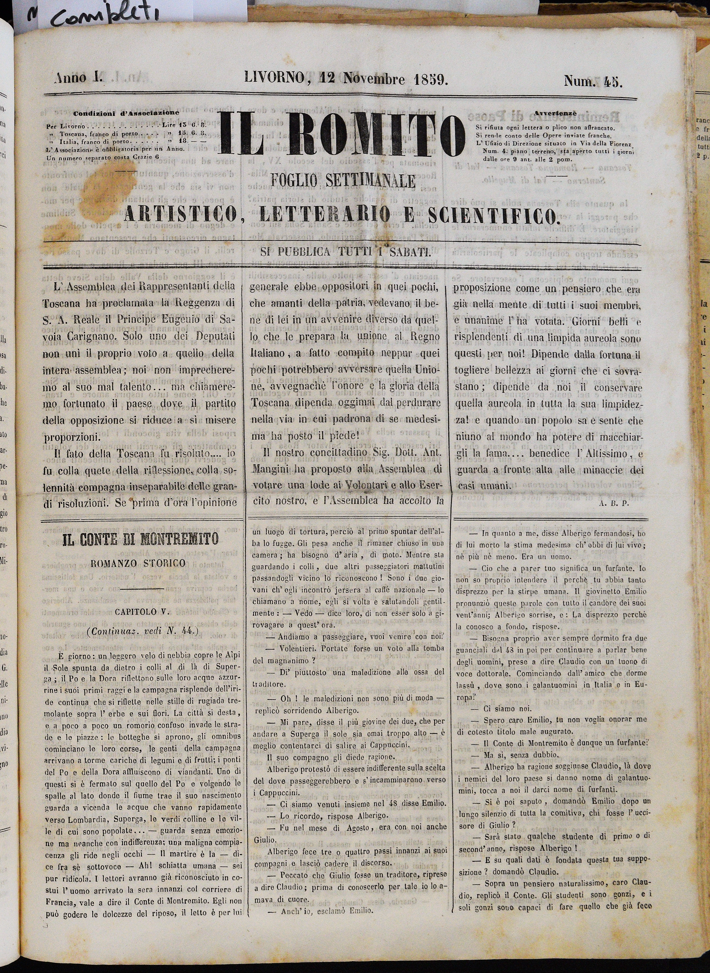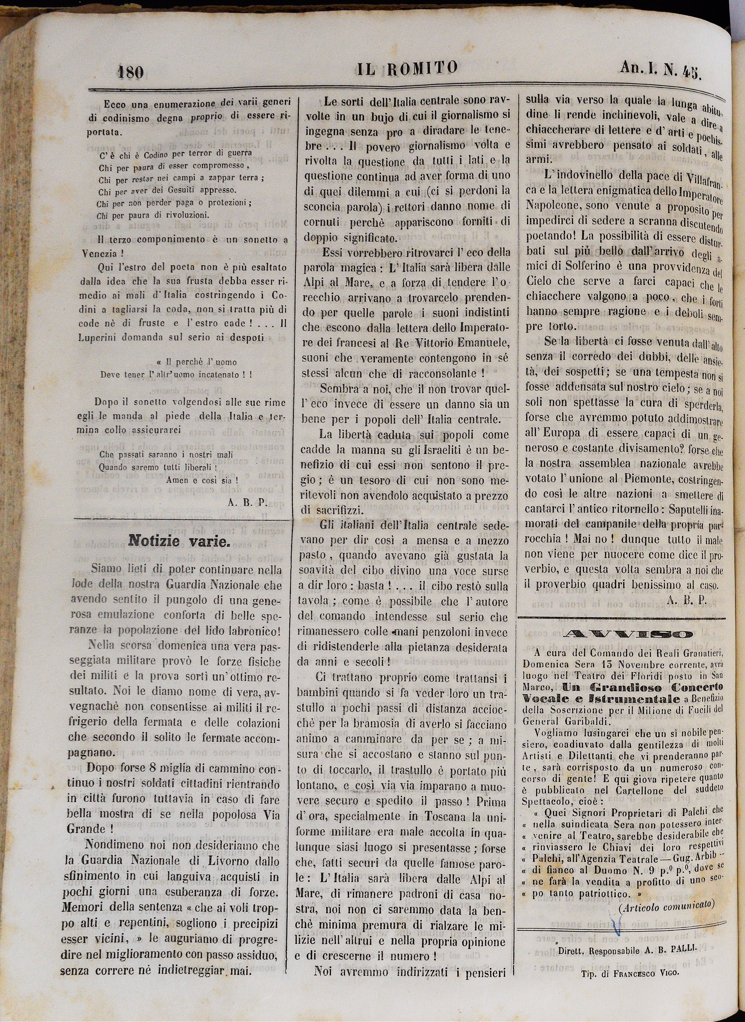 Anno I. Num. 45. Livorno, 12 Novembre 1859