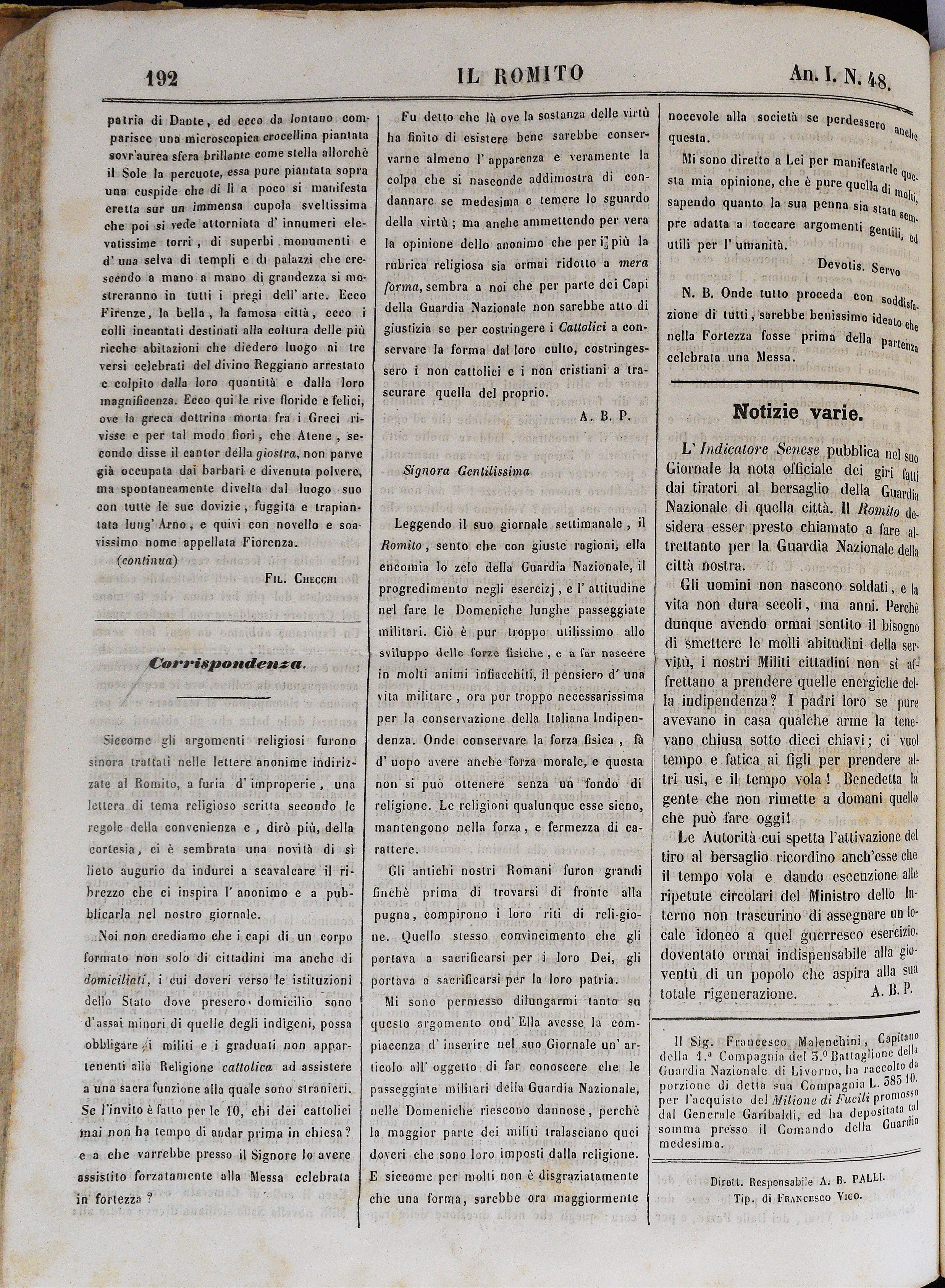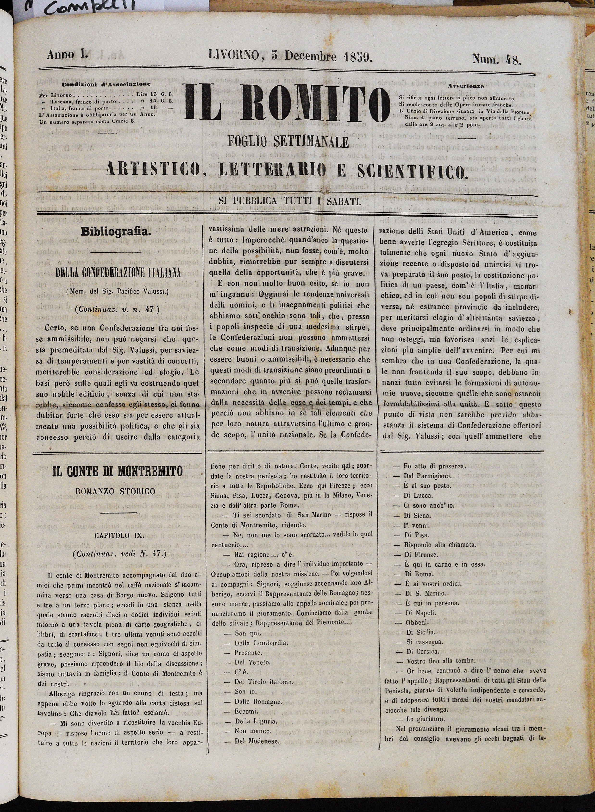 Anno I. Num. 48. Livorno, 3 Decembre 1859