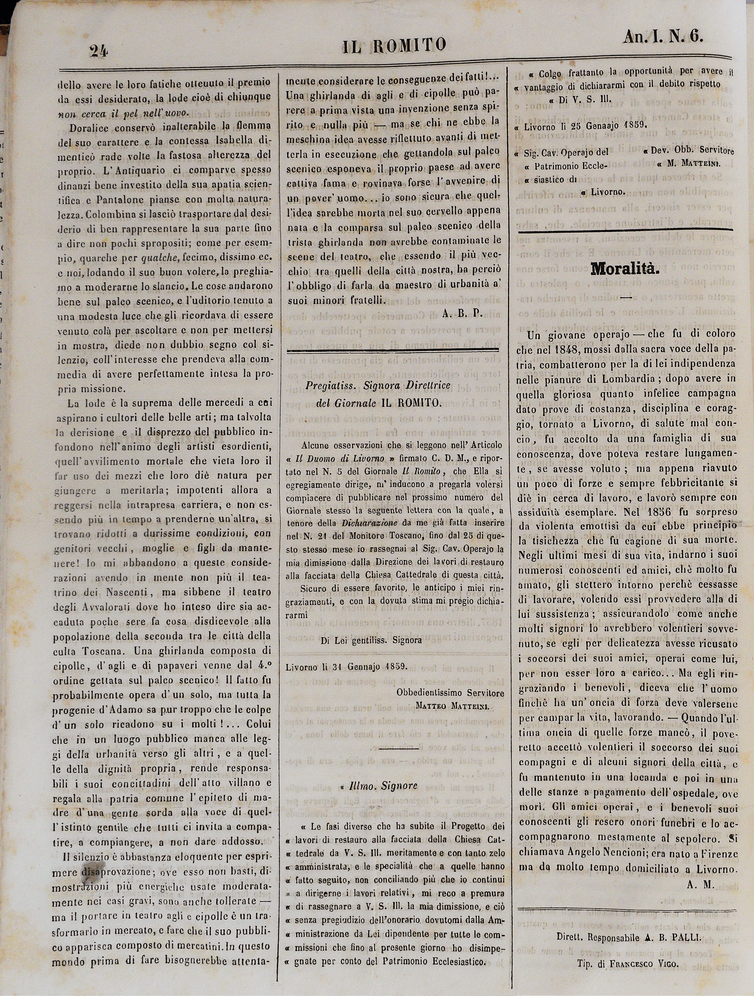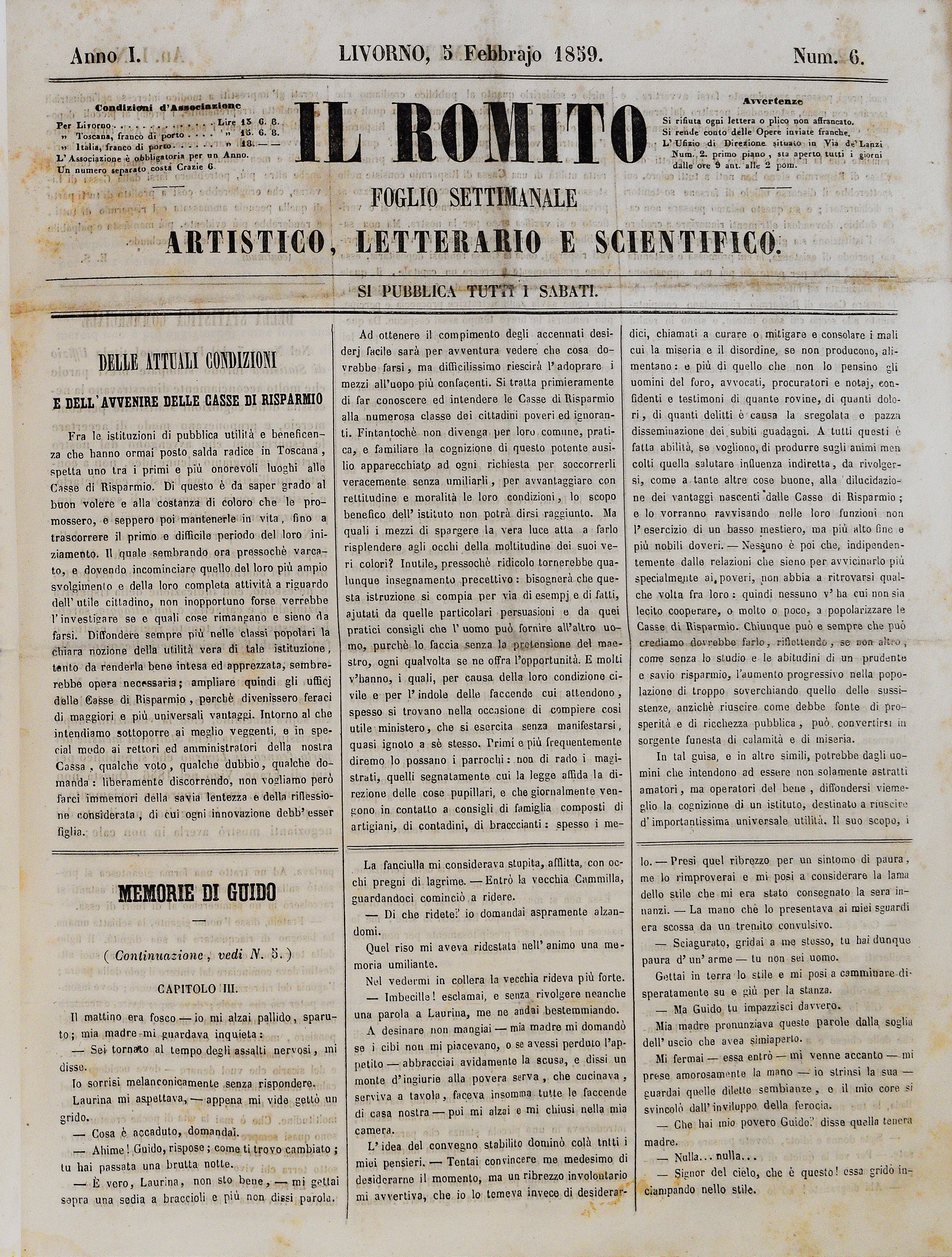 Anno I. Num. 6. Livorno, 5 Febbrajo 1859
