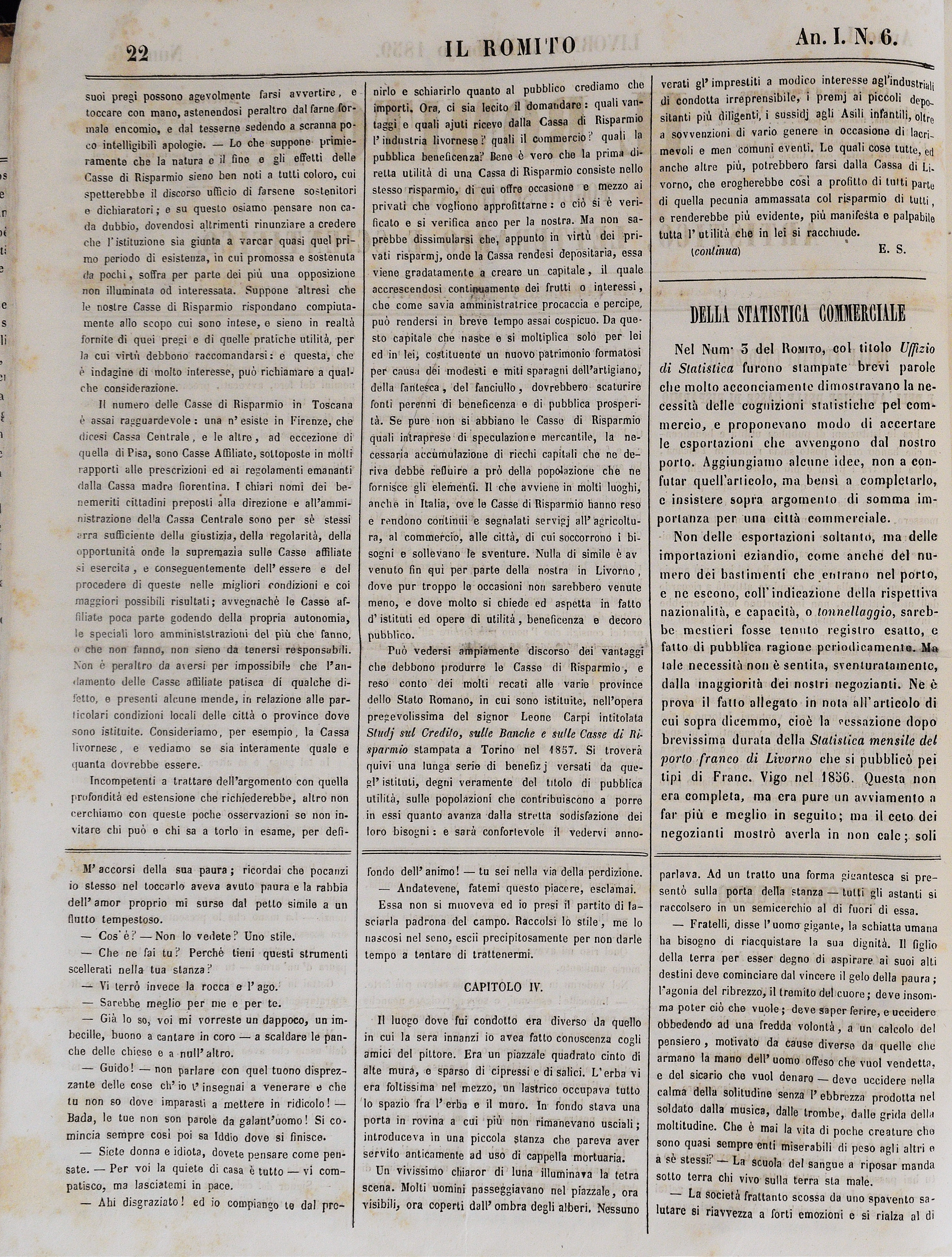 E. S.Delle attuali condizioni e dell’avvenire delle casse di risparmio (continua)pp. 21-22