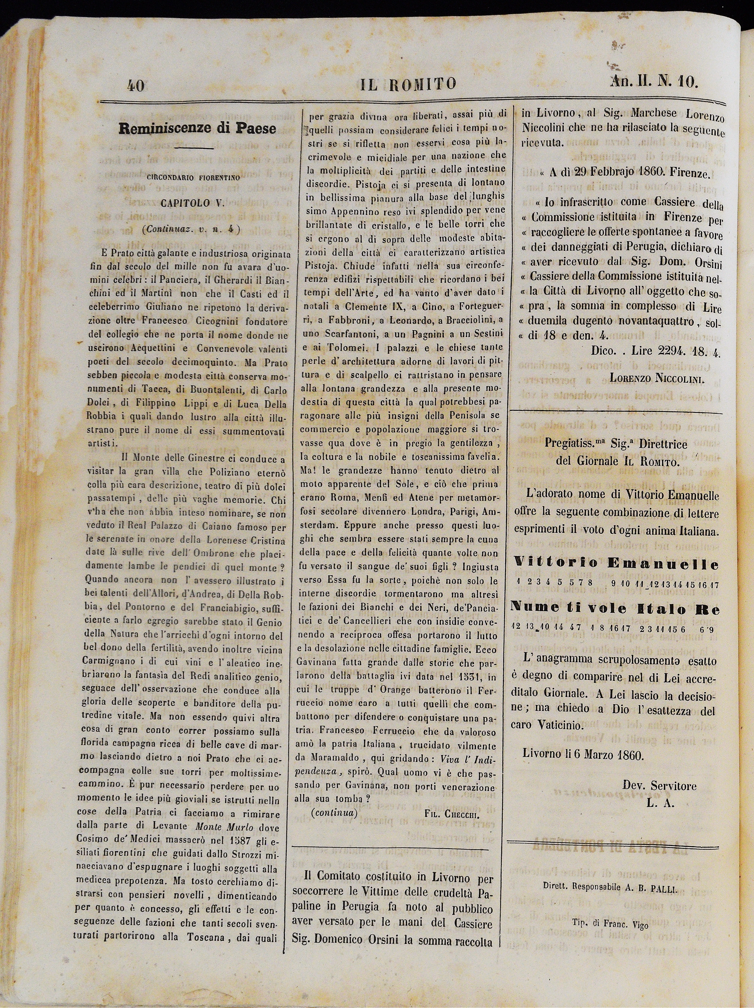 Anno II. Num. 10. Livorno, 10 Marzo 1860