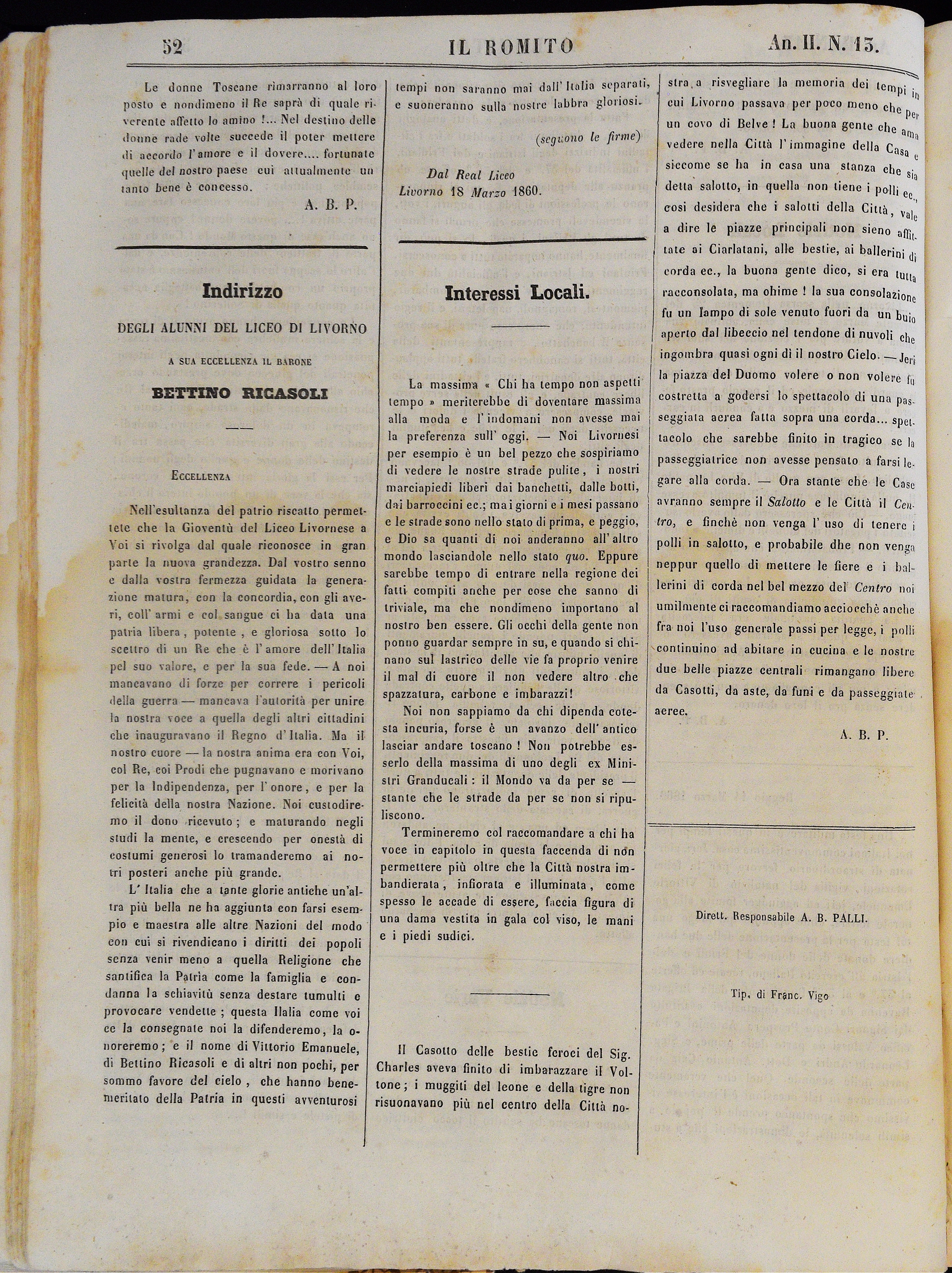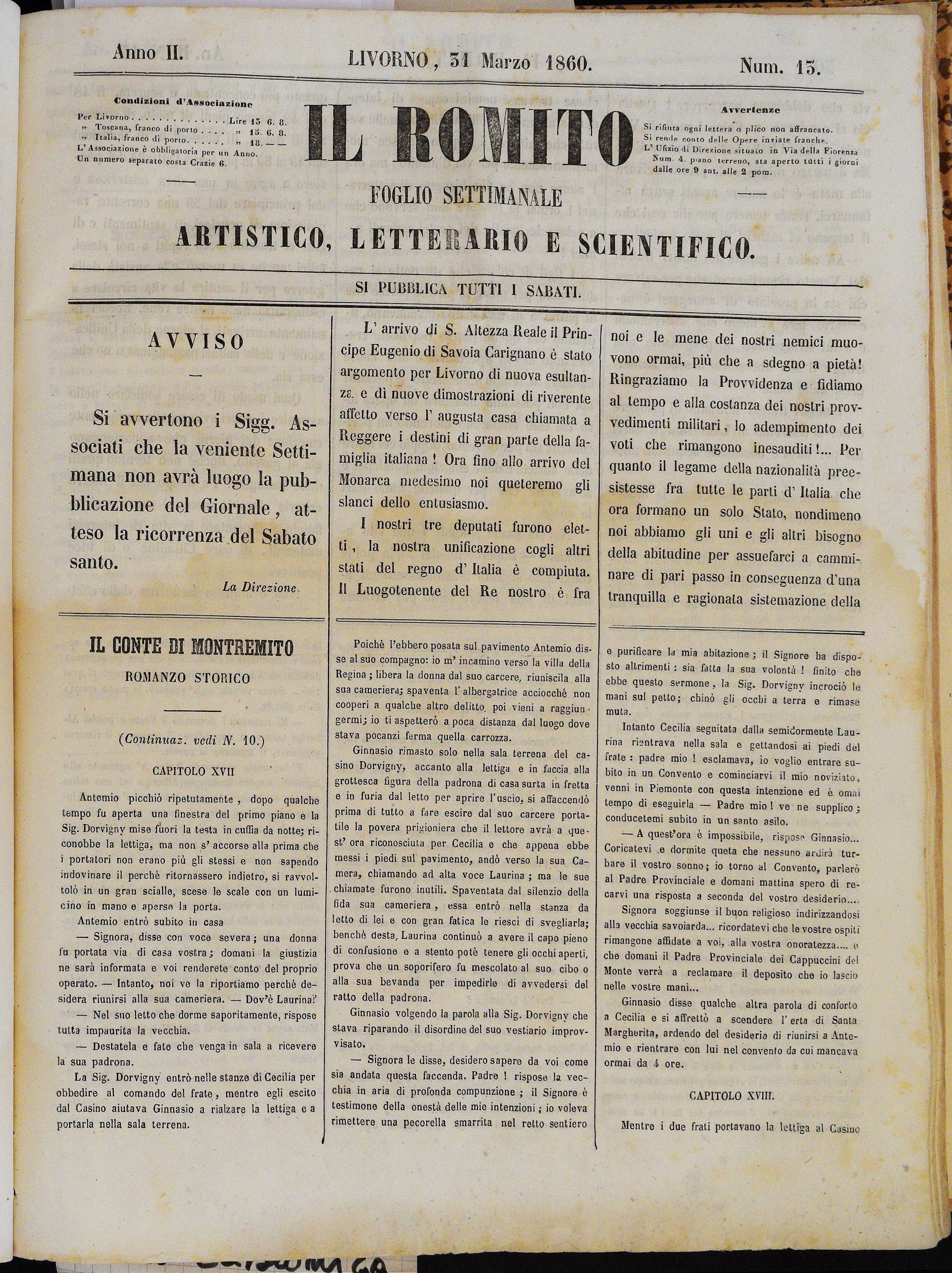 Anno II. Num. 13. Livorno, 31 Marzo 1860