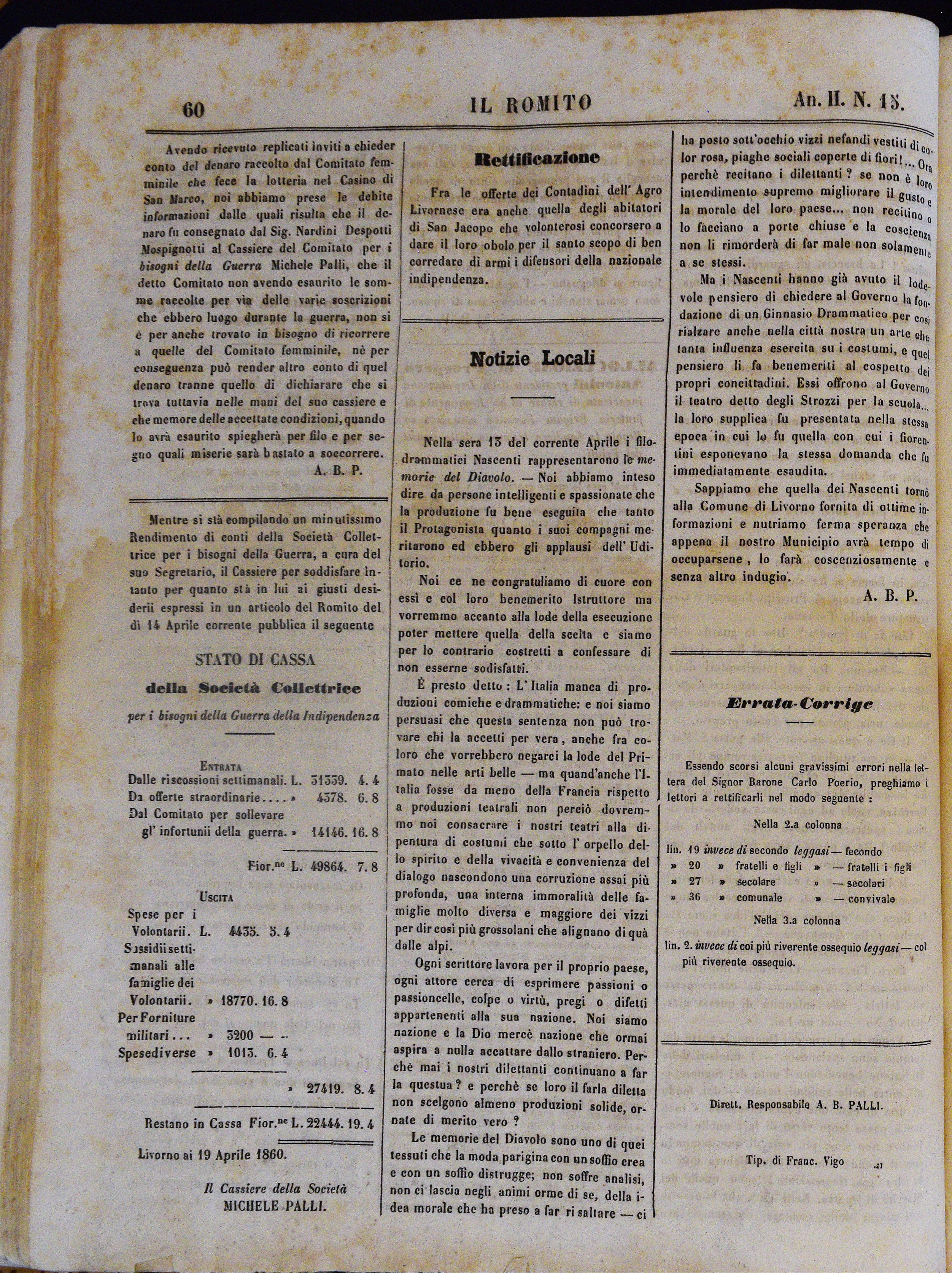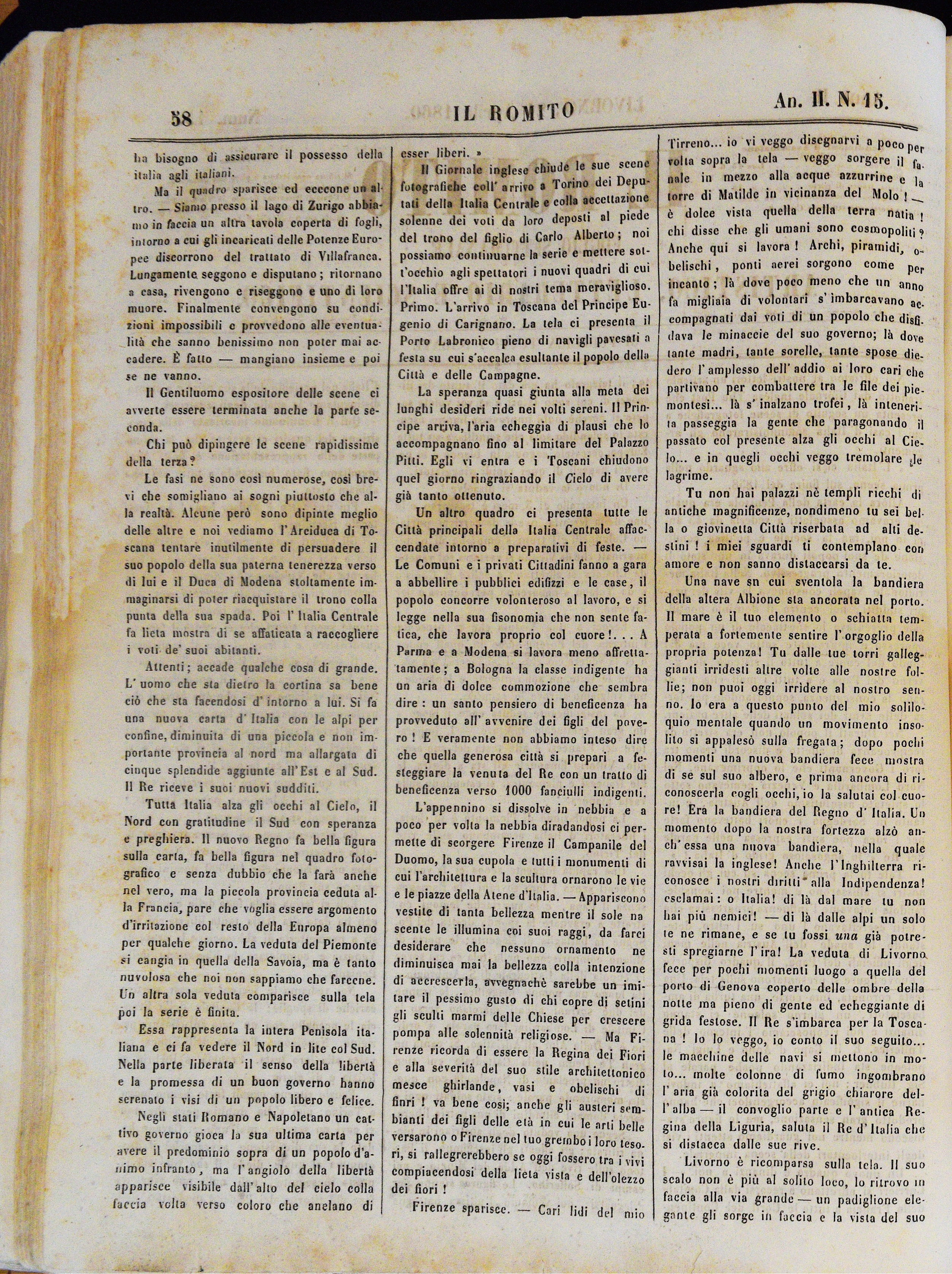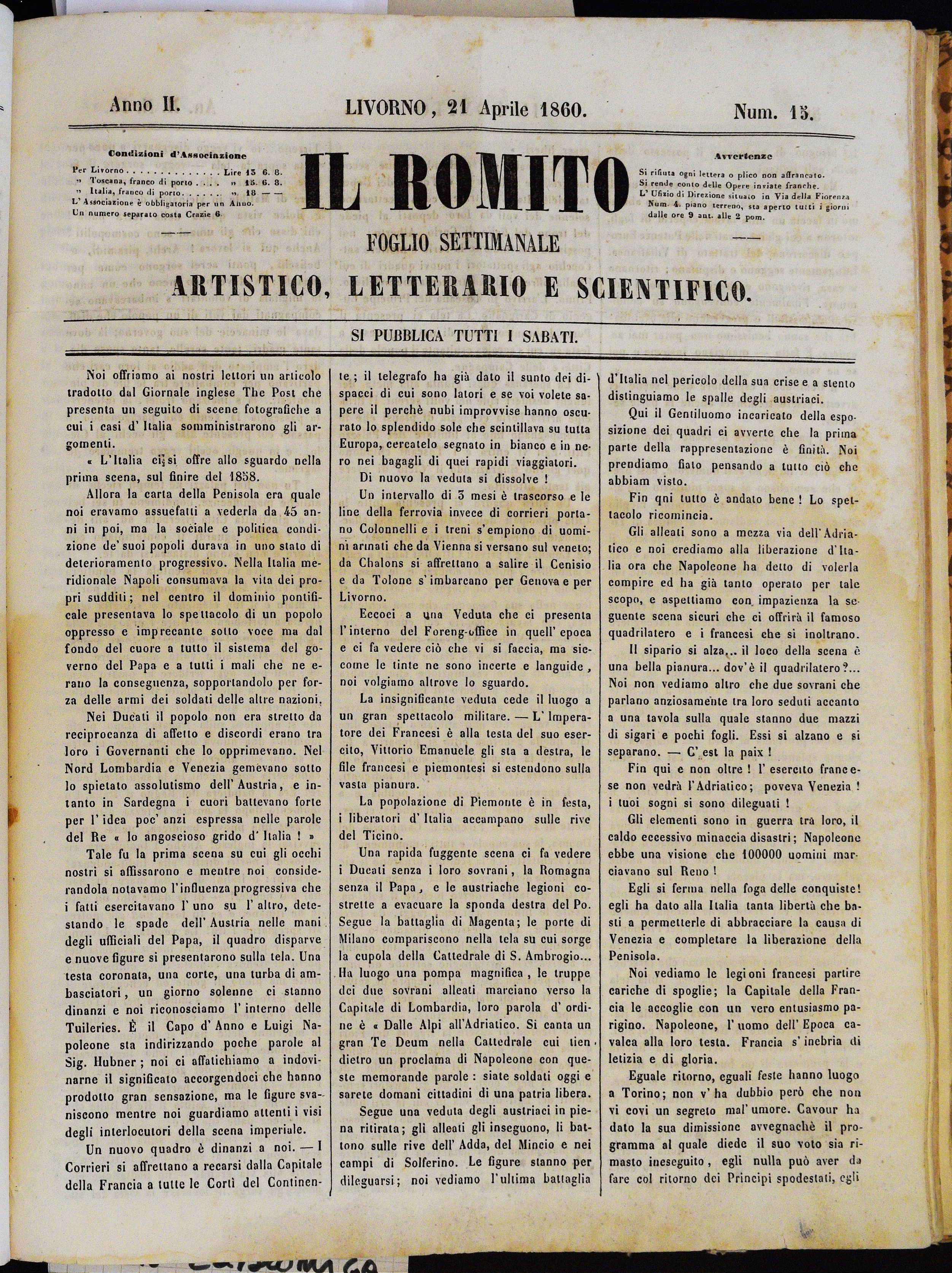 Anno II. Num. 15. Livorno, 21 Aprile 1860