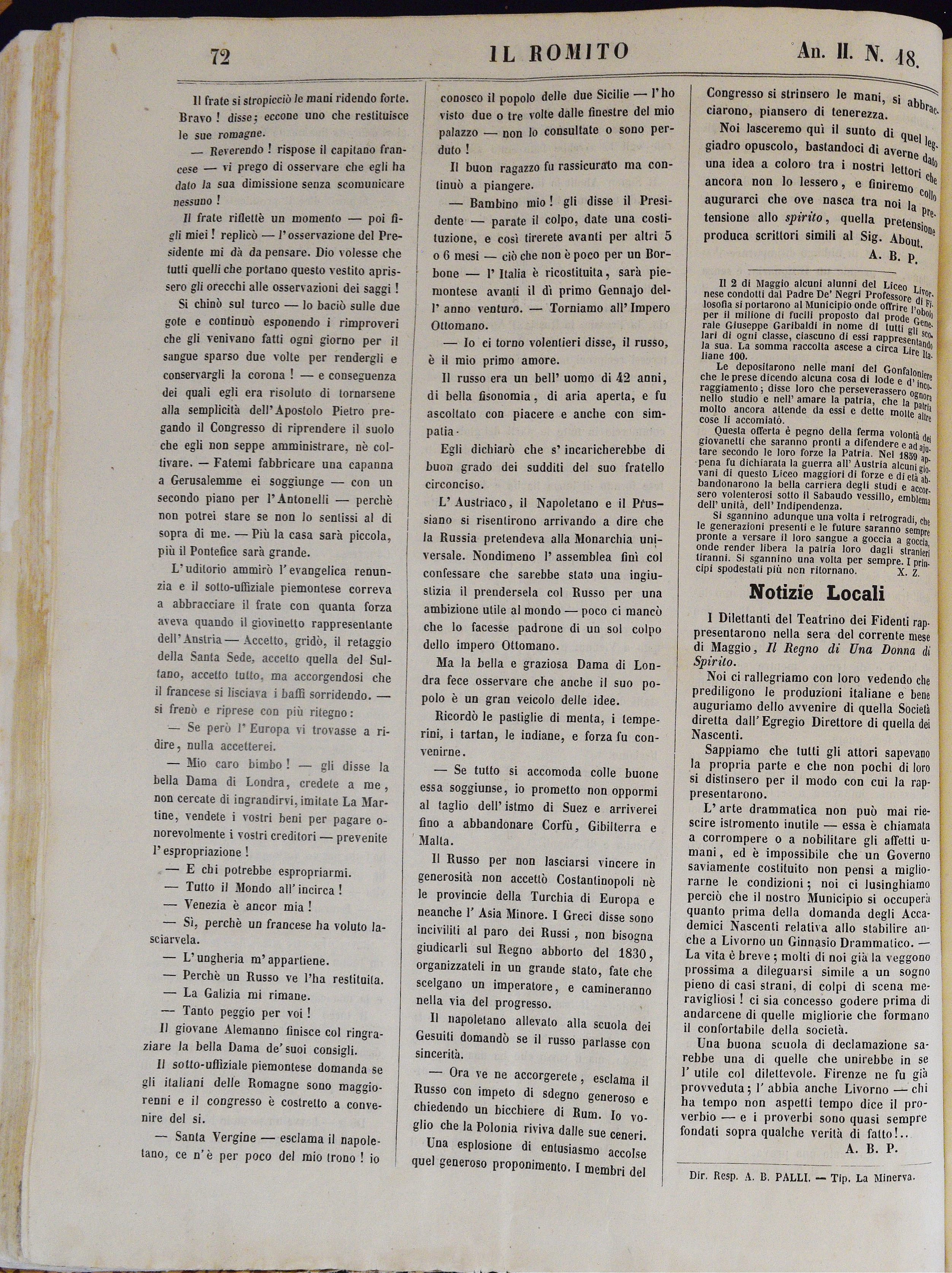 Anno II. Num. 18. Livorno, 12 Maggio 1860