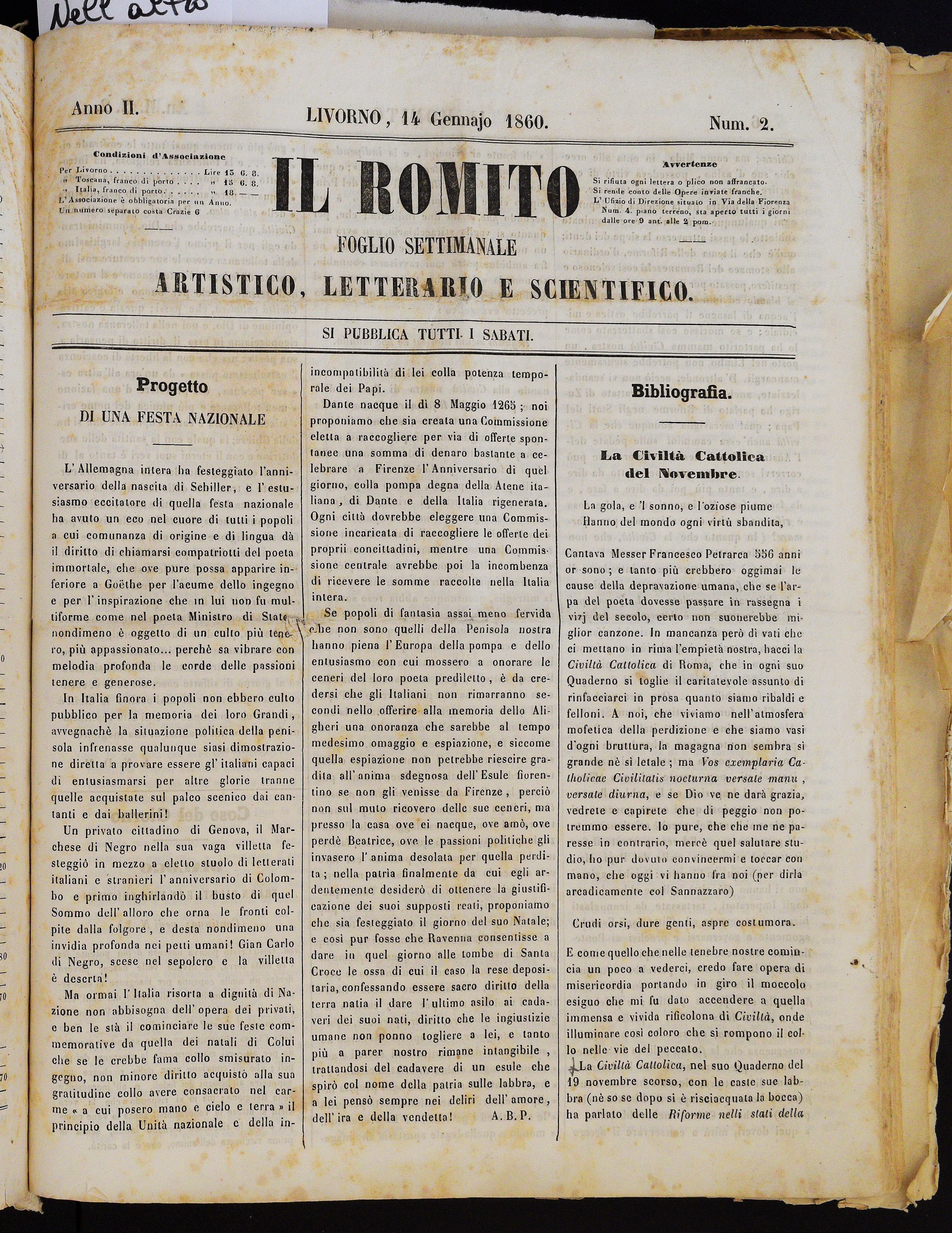 Anno II. Num. 2. Livorno, 14 Gennajo 1860
