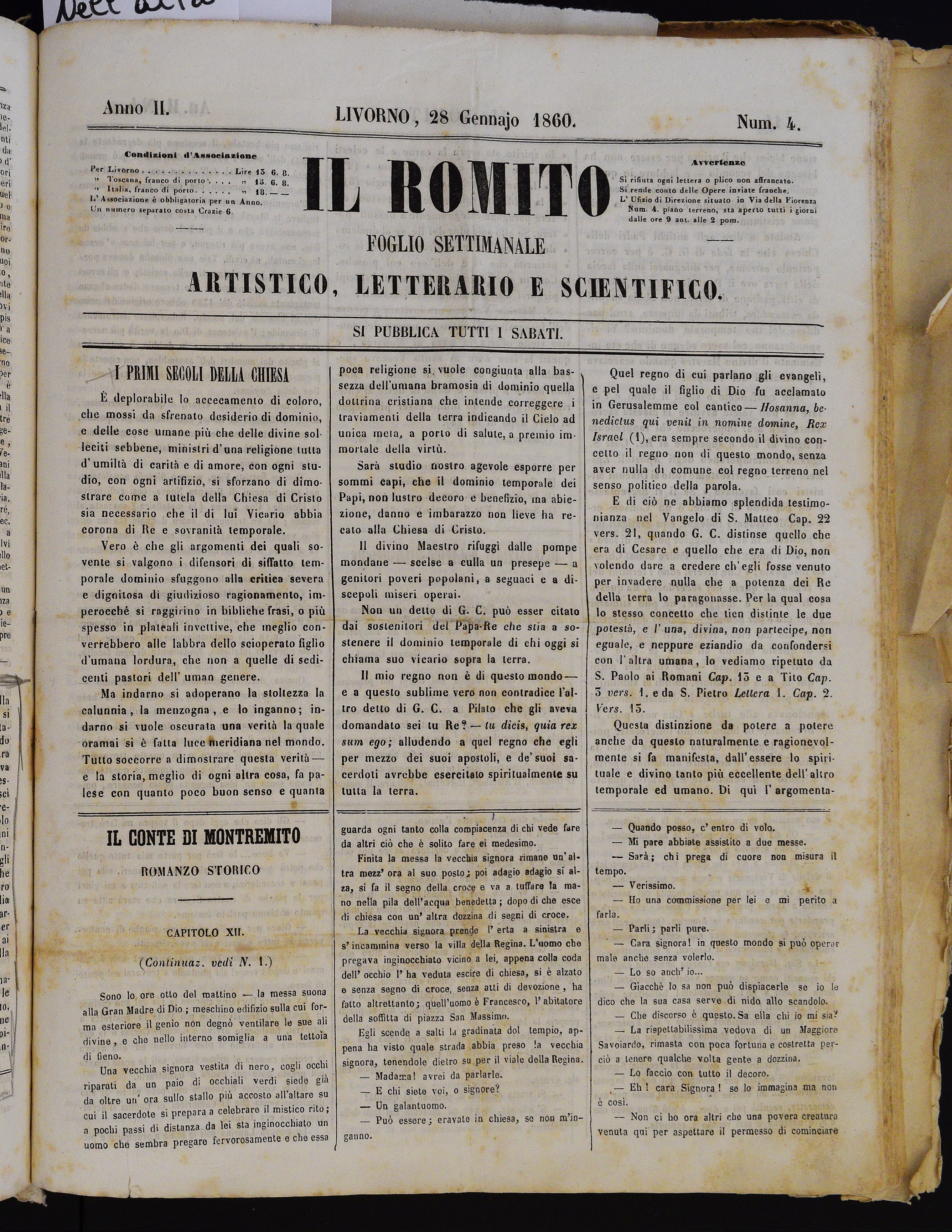 Anno II. Num. 4. Livorno, 28 Gennajo 1860