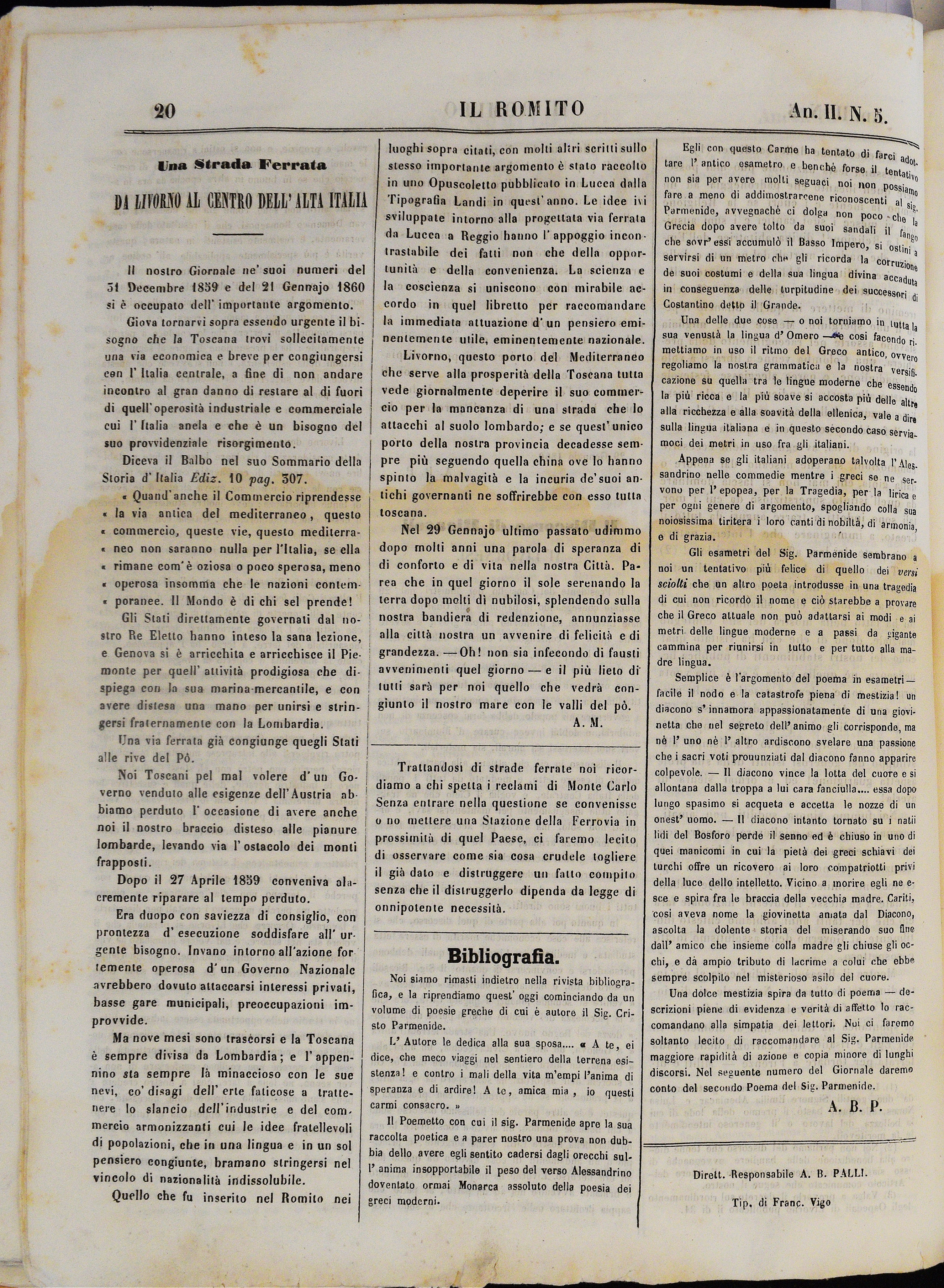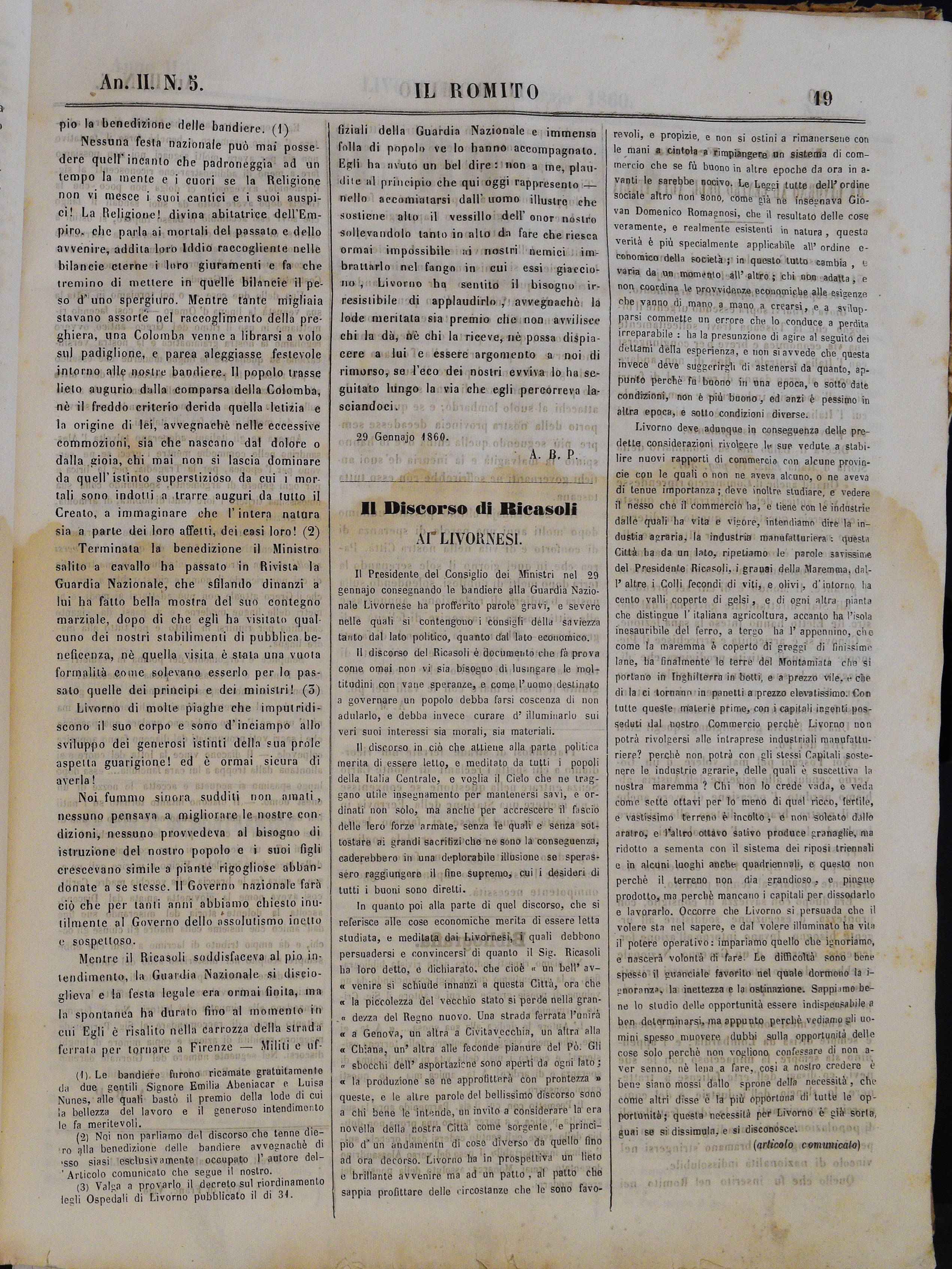 Anno II. Num. 5. Livorno, 4 Febbrajo 1860