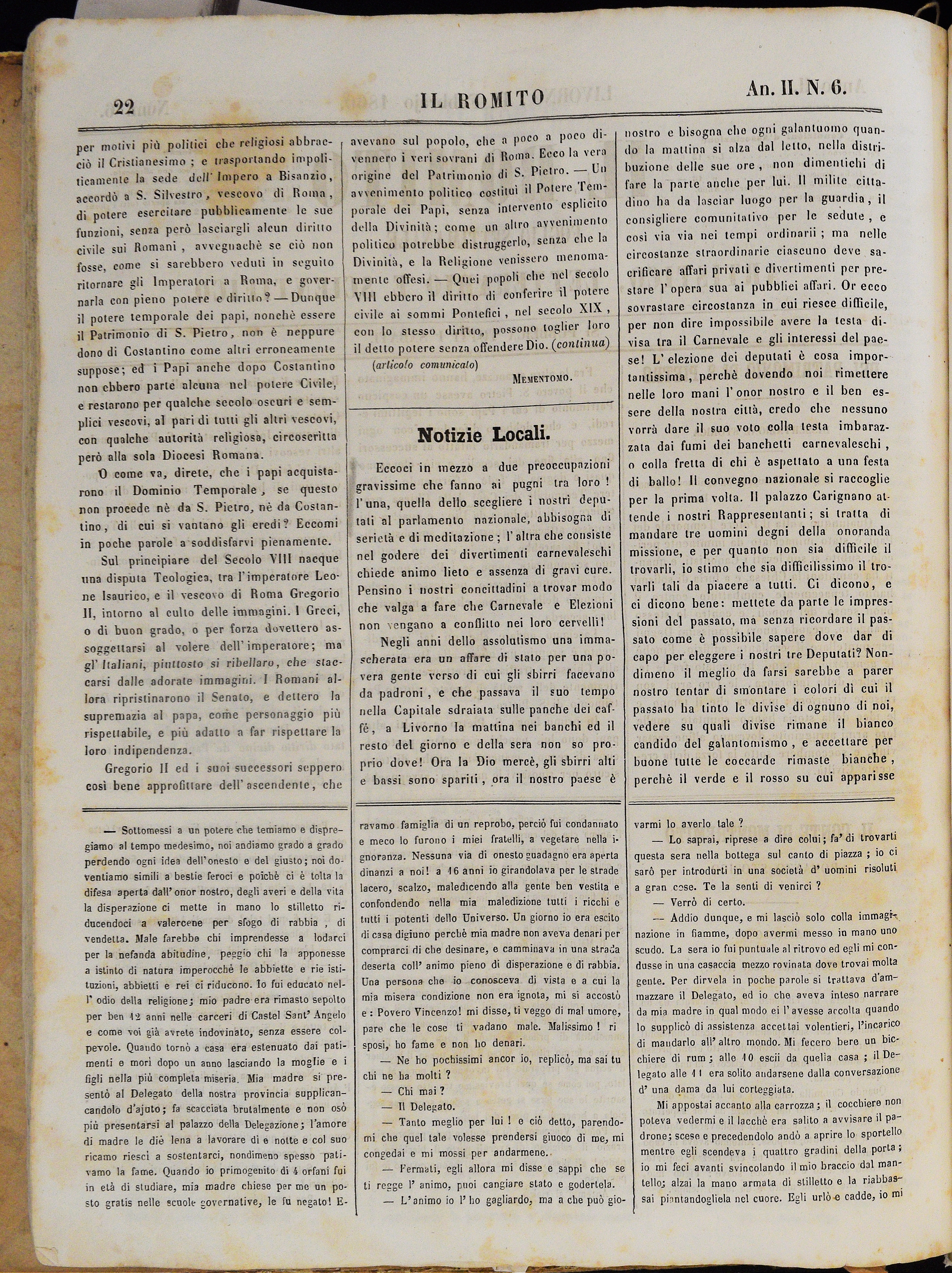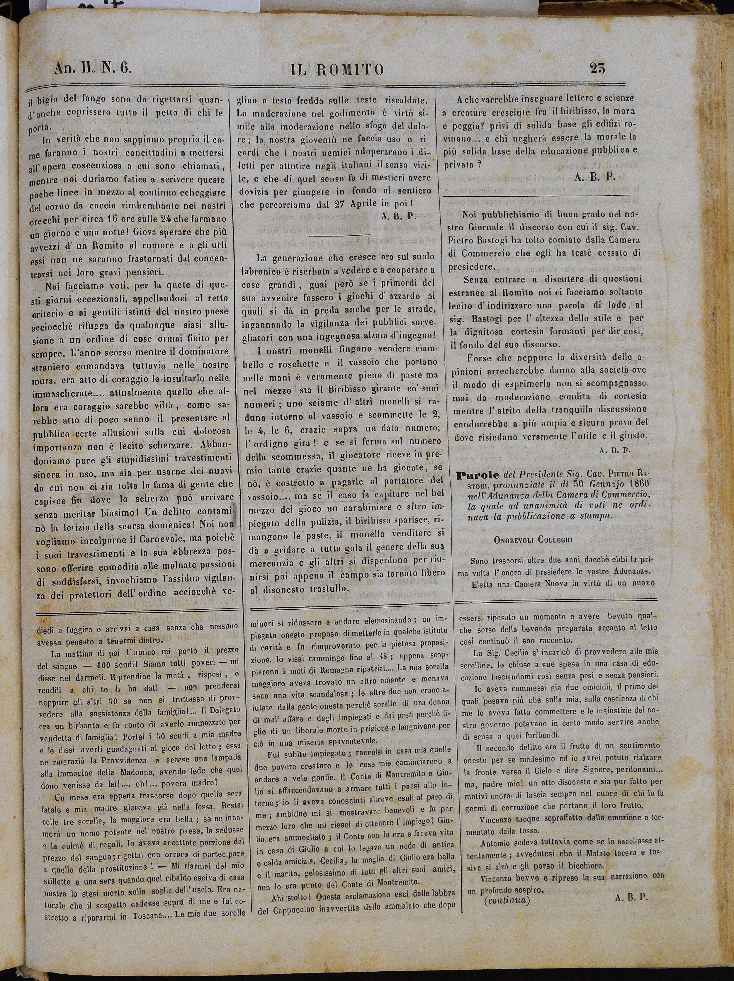 Anno II. Num. 6. Livorno, 11 Febbrajo 1860